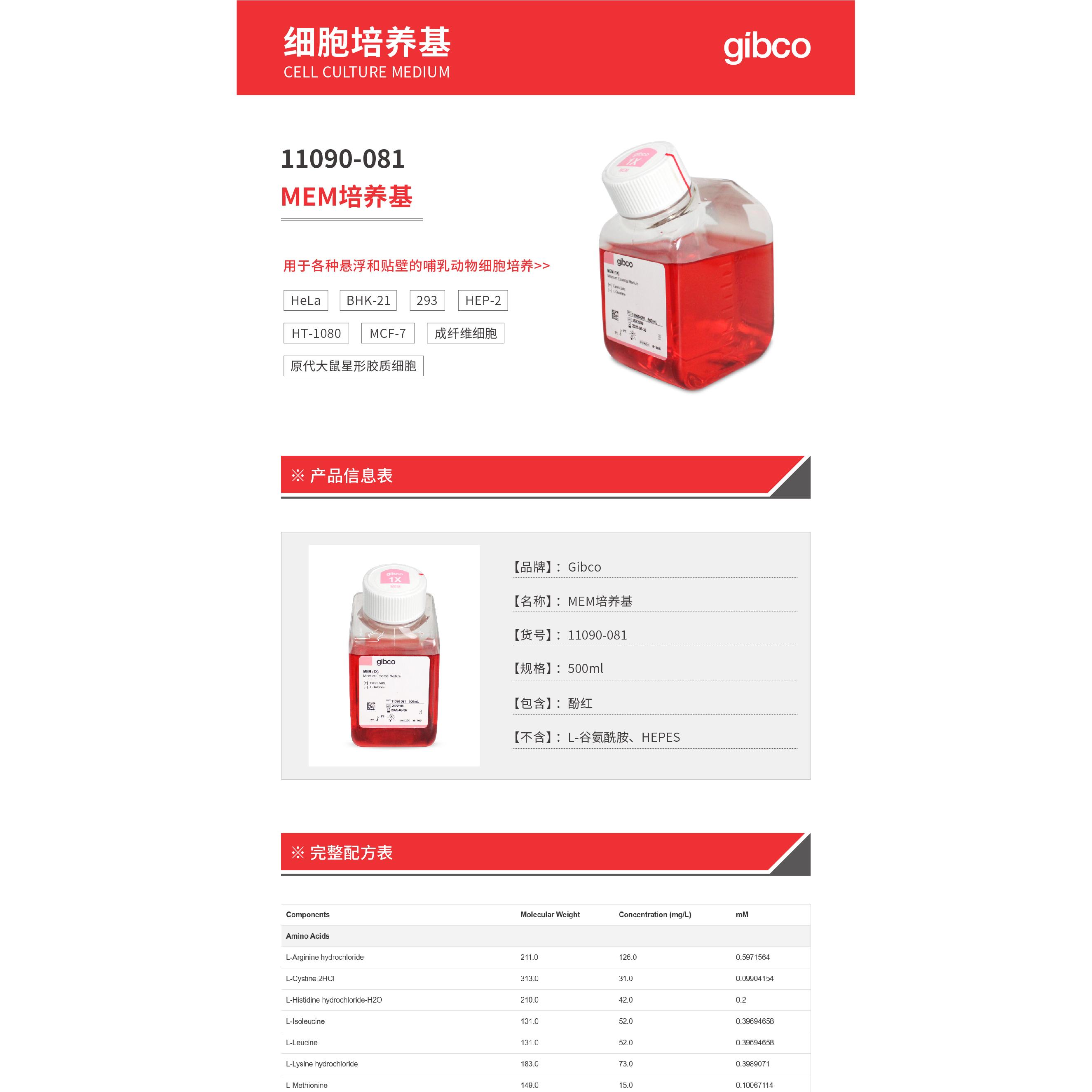 11090-081 MEM培养基(不含L-谷氨酰胺,HEPES)