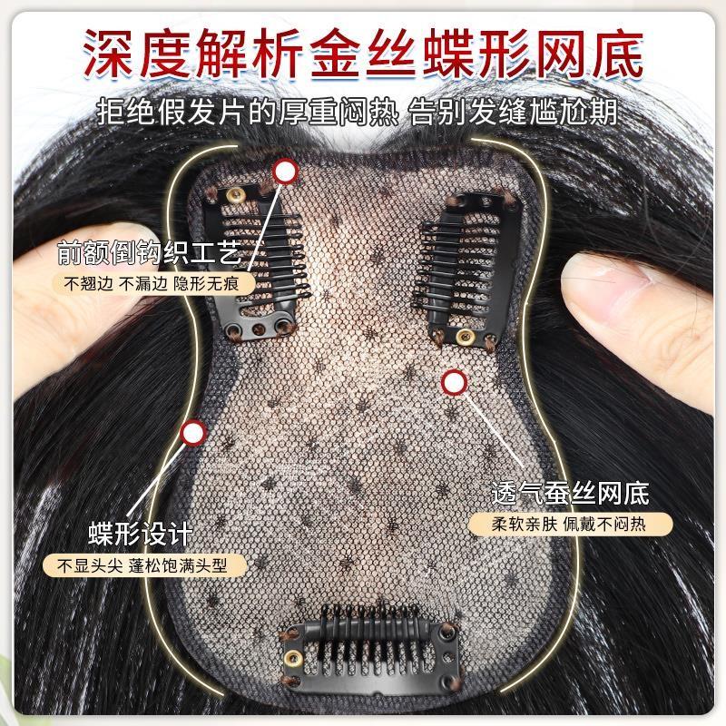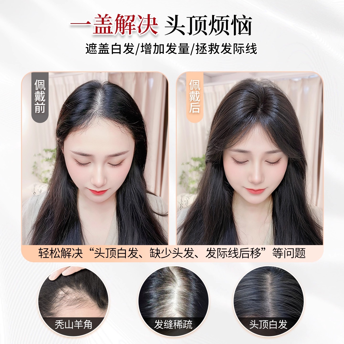 戴米安递针假发女片头顶补发全真人发增发量遮白发前额无边补发片