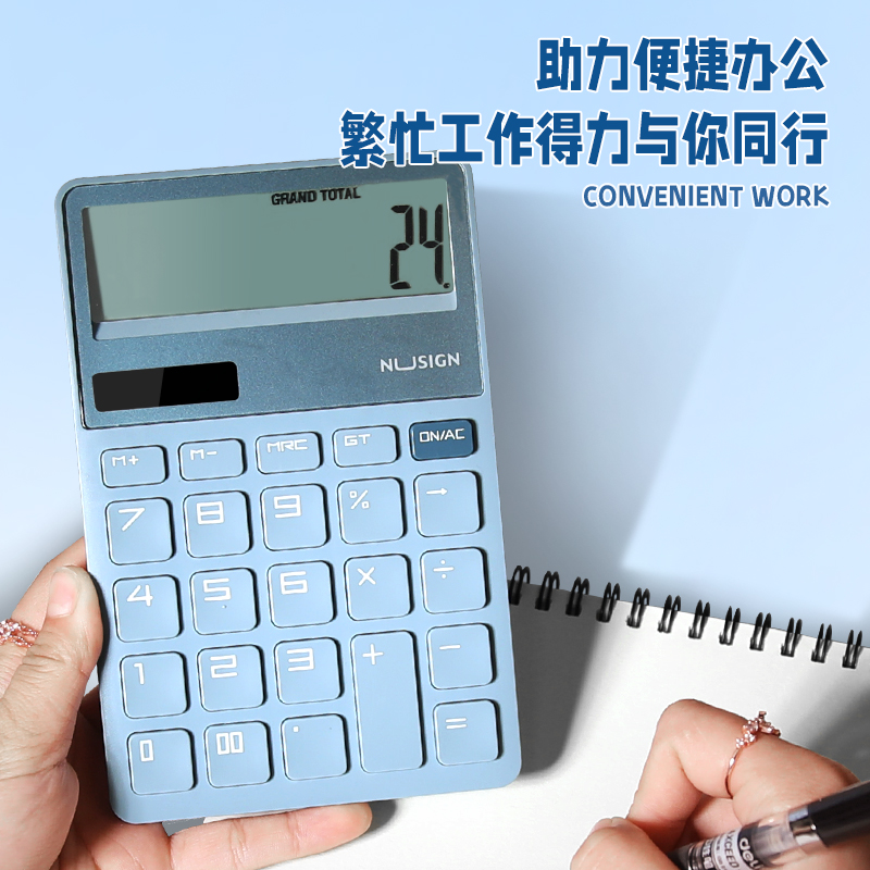 得力钮赛桌面计算器办公用太阳能商务型时尚女便携小号记算机可爱糖果色会计财务专用个性创意大按键计算机