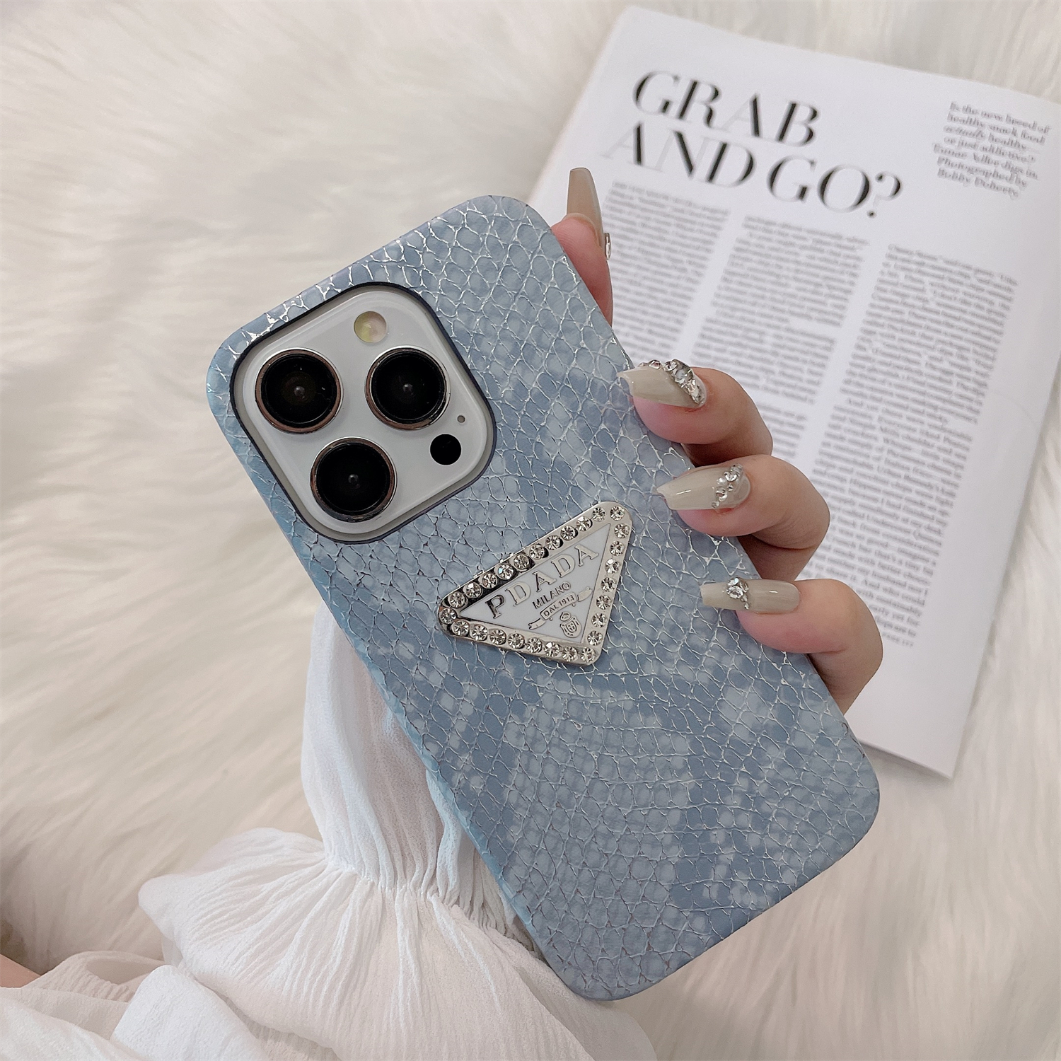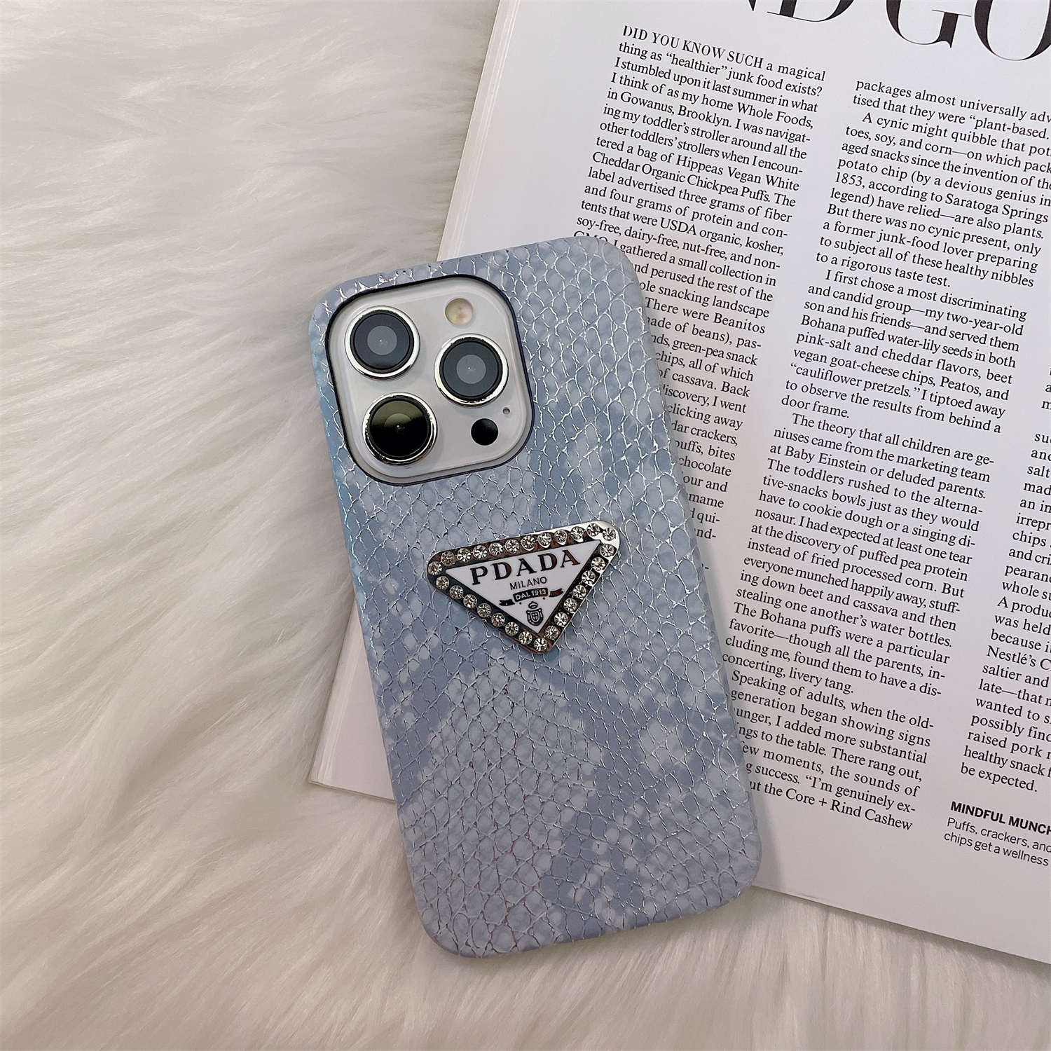 新款16pro烫银蛇纹潮牌P钻三角标15适用苹果14promax手机壳iPhone13女12pro皮质11大牌xs max保护套软壳奢华