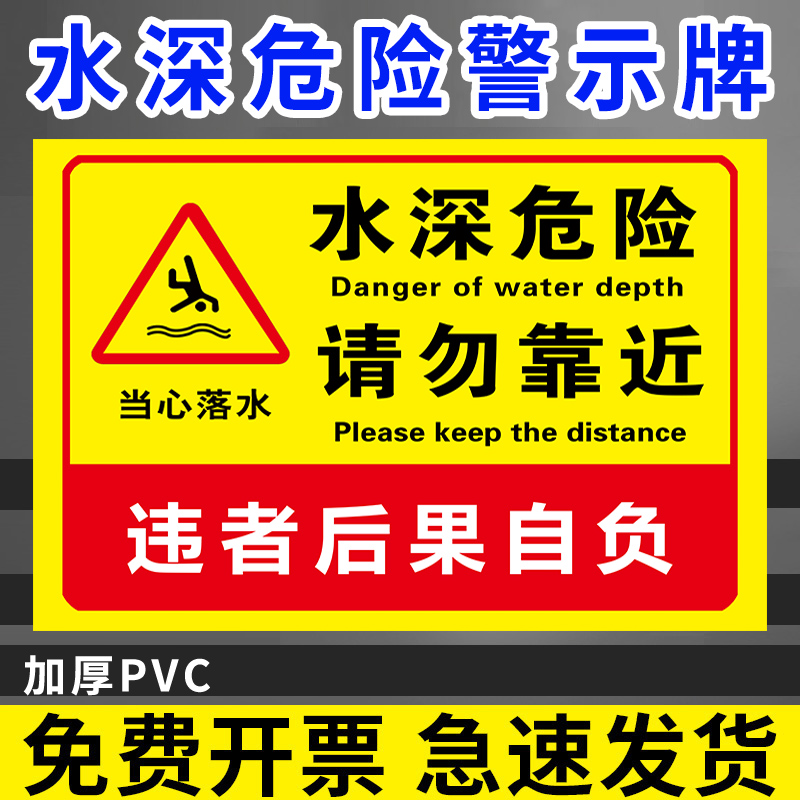 水深危险警示牌鱼塘警示牌禁止钓鱼告示牌定制水库请勿靠近防溺水提示牌私人鱼塘严禁捕鱼电鱼禁止垂钓标识牌
