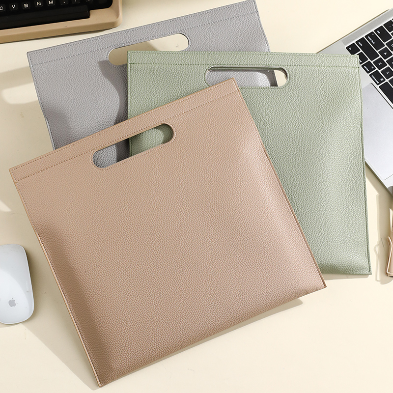 新款A4重磅荔枝纹手提文件袋皮质定制大容量防水商务办公档案资料