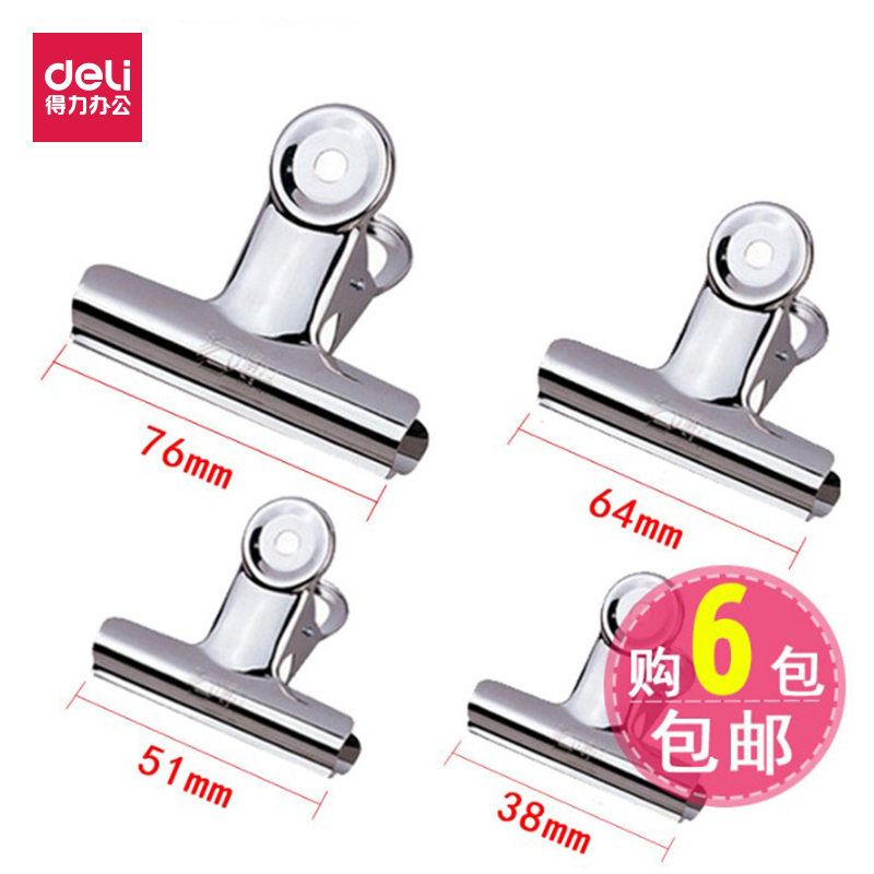 得力票夹6个包装圆形铁夹子大号中号小号山型财务文件票据夹多功能金属办公文具用品特大试卷凭证装订固定夹