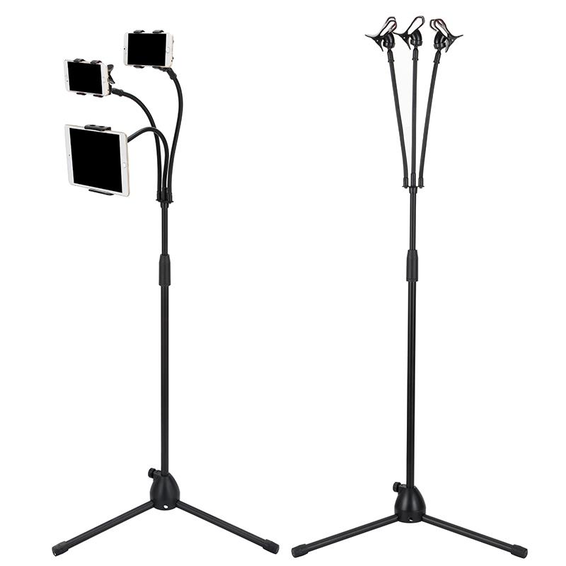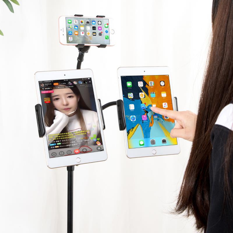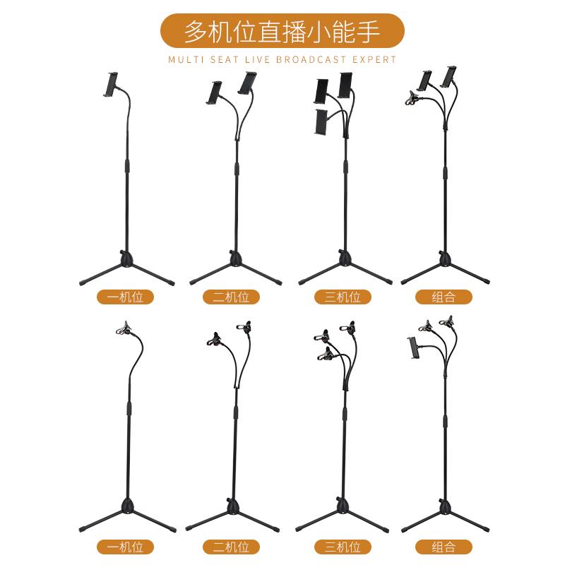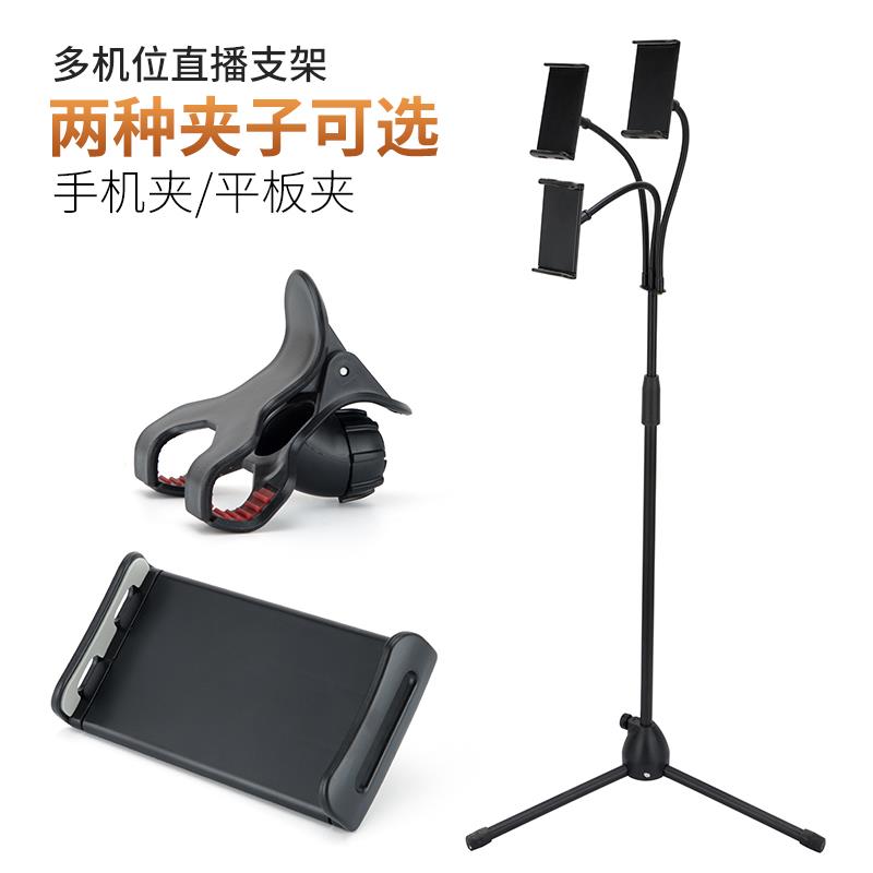 手机直播支架多机位夹子头双平板电脑通用落地三脚架折叠便携唱歌