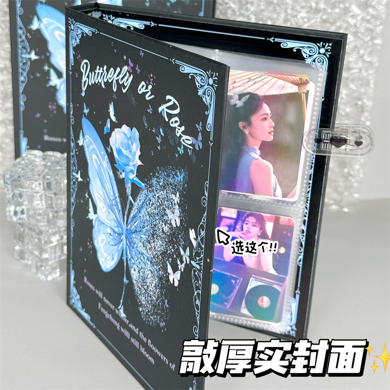 蓝梦幻蝶蝴蝶A5卡册ins高颜值活页小卡硬壳四宫格相册收纳册
