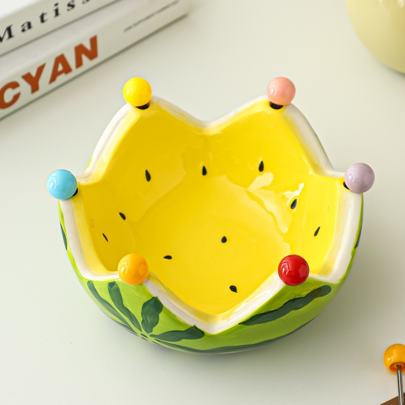 创意西瓜造型陶瓷果碗水果叉套装家用客厅茶几水果签不锈钢甜品叉