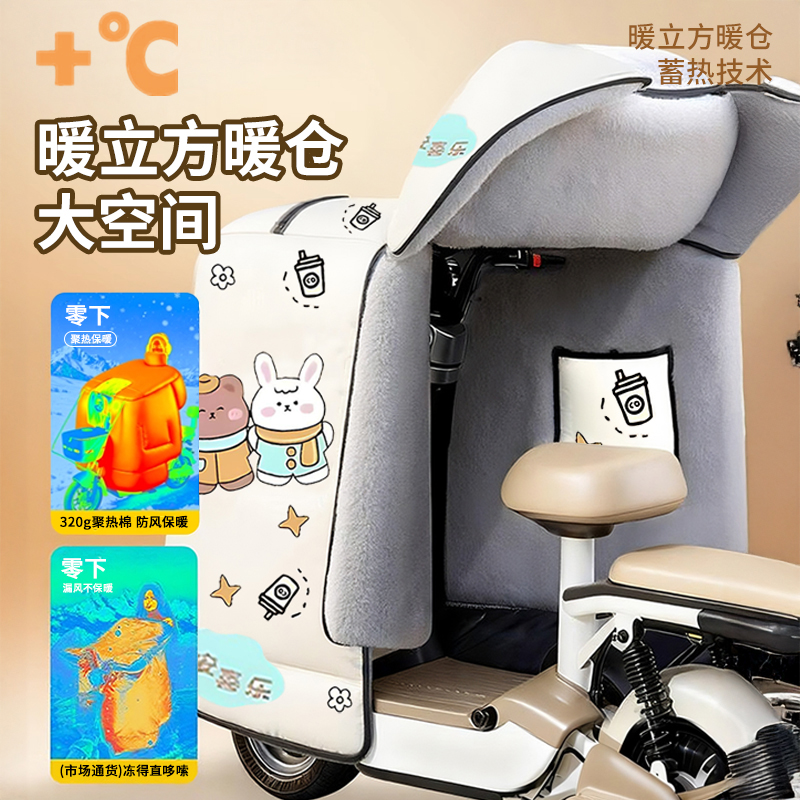 电动车挡风被冬季加绒加厚全包斗篷式电瓶摩托防风防水罩四季通用