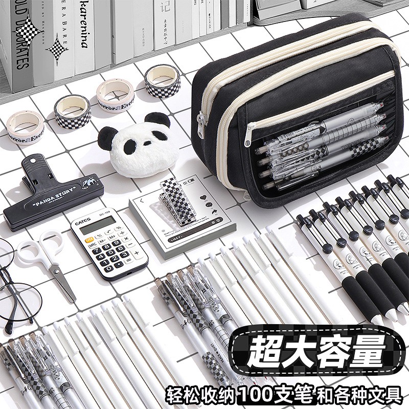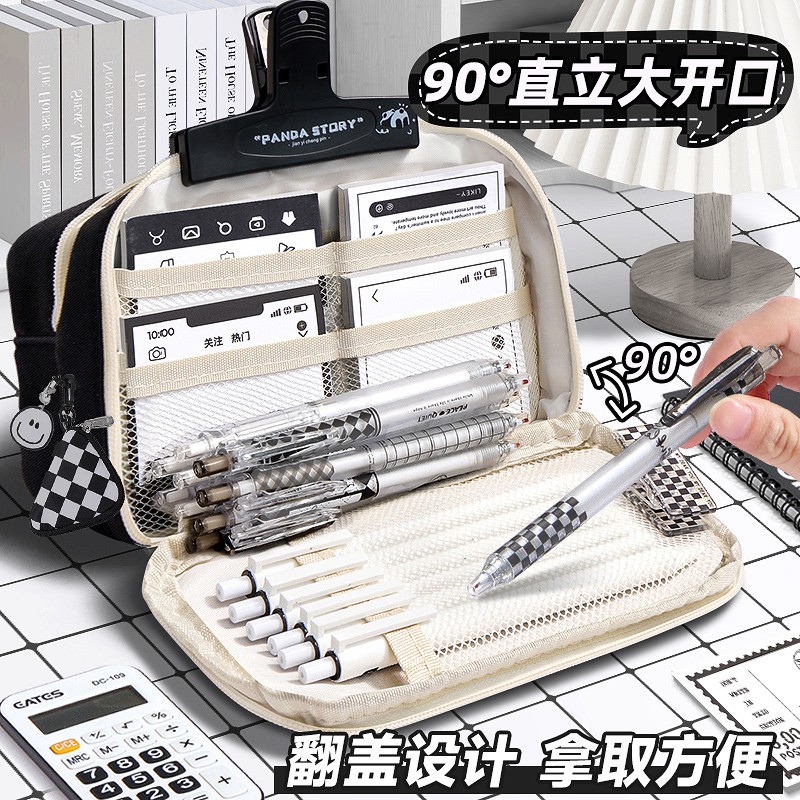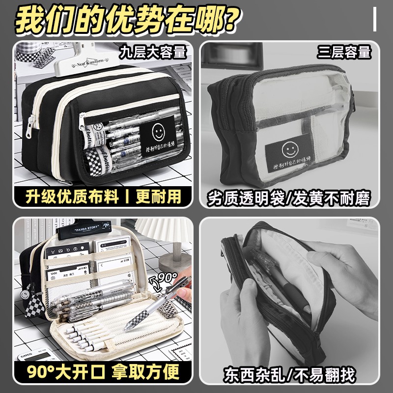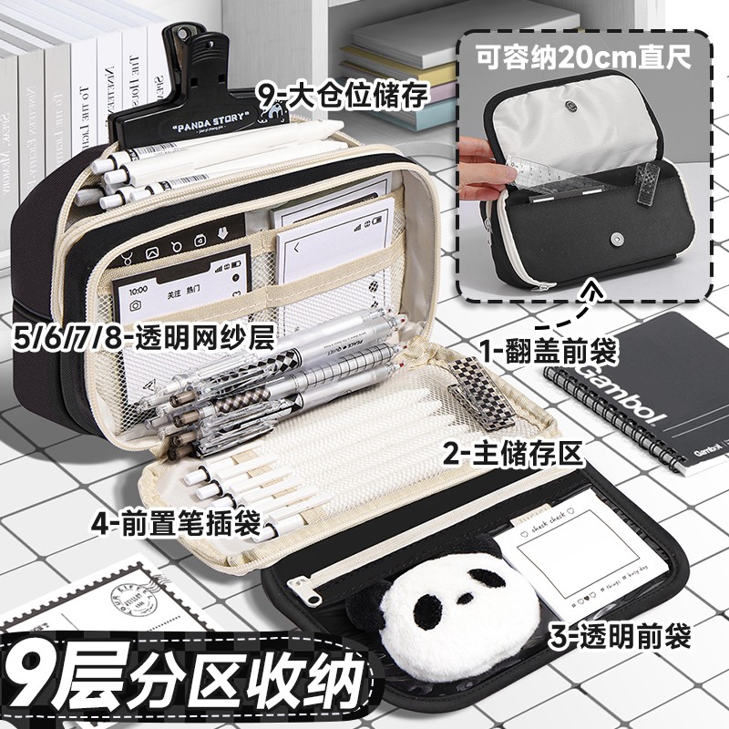 9层超大容量痛包笔袋女生2025新款高颜值ins风超火多层分隔文具盒简约耐脏男孩初高中生小众不撞款黑色铅笔盒