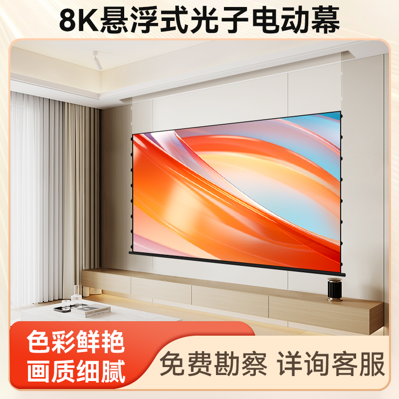 当贝投影悬浮款电动幕布家用拉线电动幕布光子隐藏暗装式幕布语音