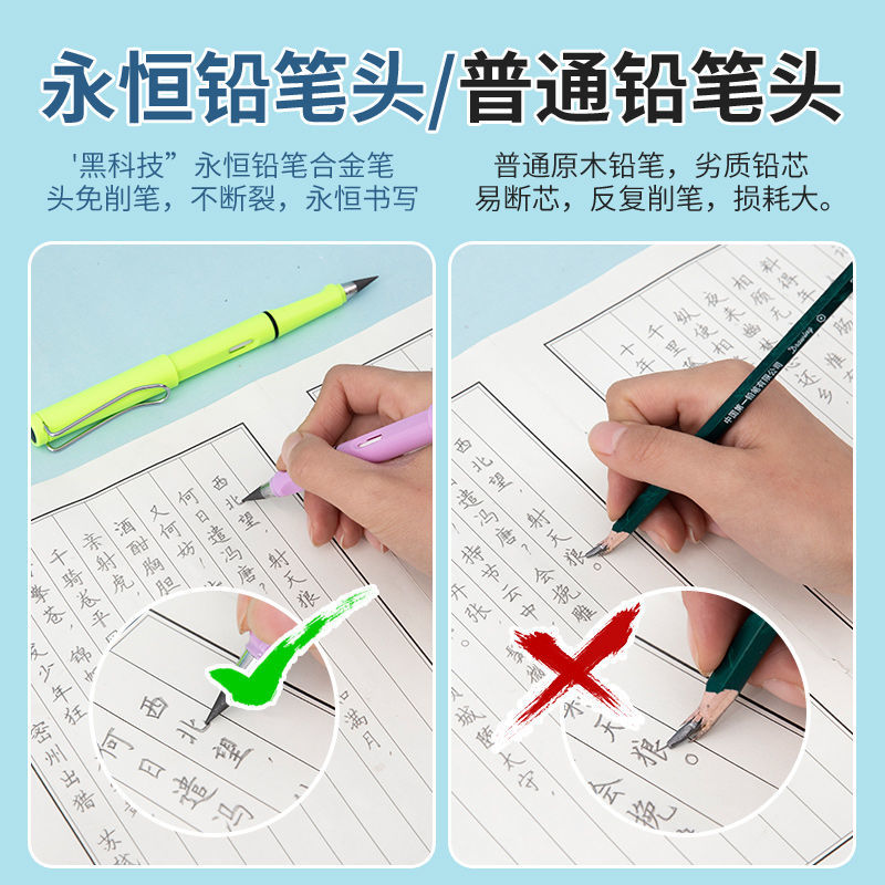 永恒铅笔初学者专用不断铅免削HB无铅墨持久使用写字神器