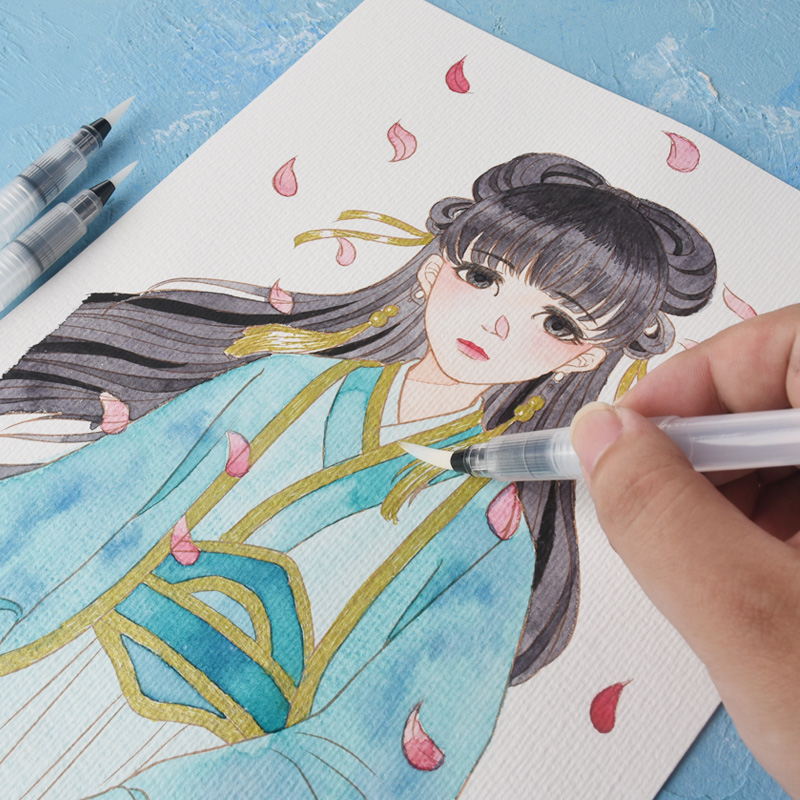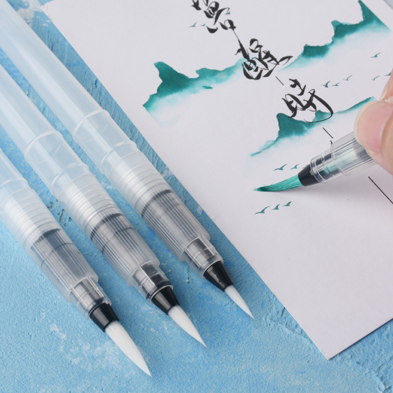 【三支装包邮】自来水笔彩墨染卡工具套装软头笔初学者大容量储水毛笔画画填色水彩毛笔调色盘学生美术生专用