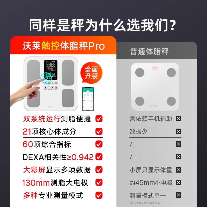 沃莱智能体脂秤电子称体重的家庭用高精准度小型人体减肥计器充电