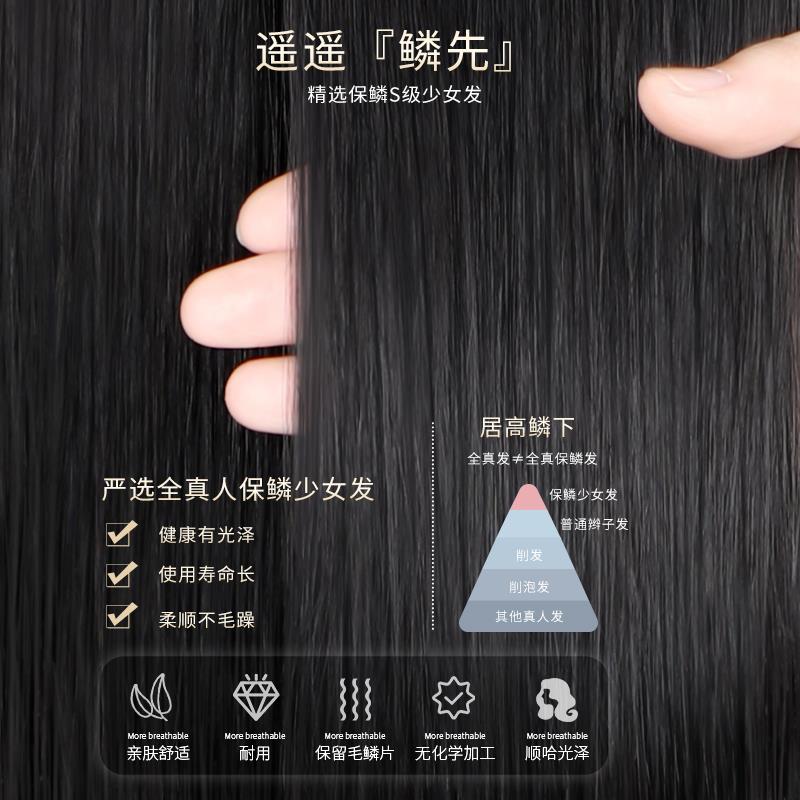 假发片女头顶补发片随意分缝真发全真人发遮白发蓬松增发量假发片