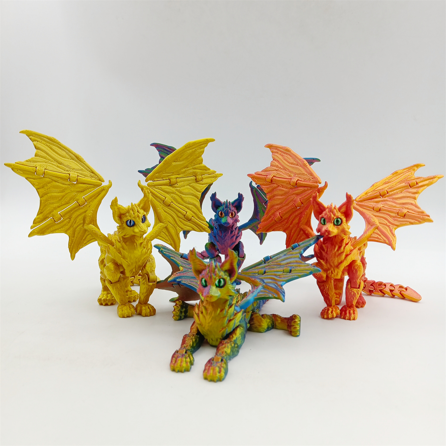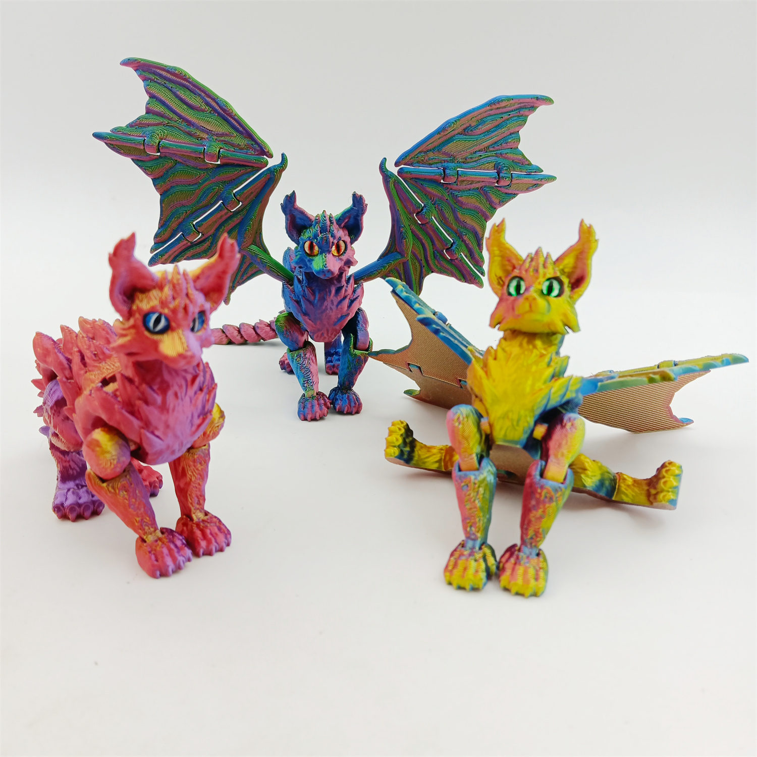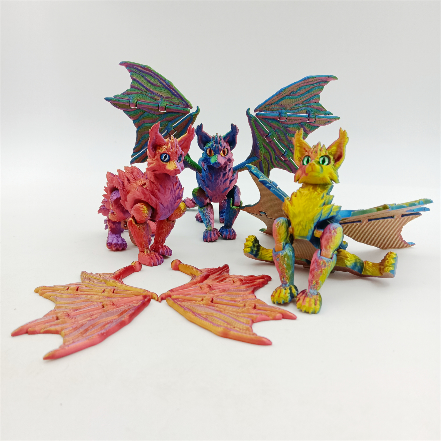 3D打印灵龙猫带翅膀猫咪手办动物模型摆件可活动关节桌面摆件礼物