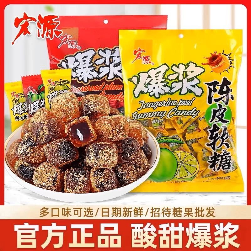 宏源爆浆陈皮糖话梅糖软糖果零食新年水果糖喜糖年货招待糖散装
