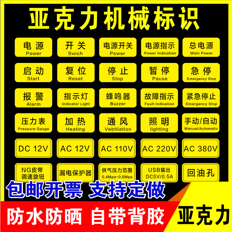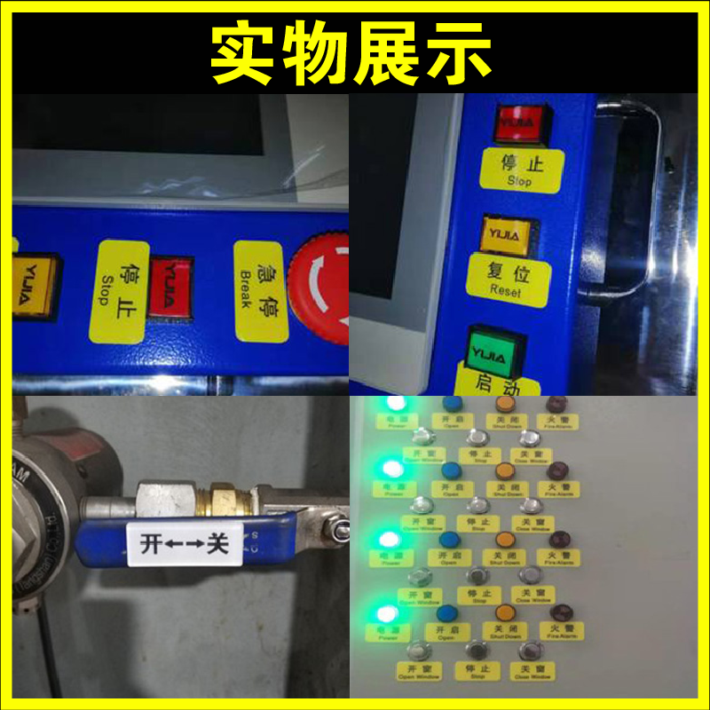 亚克力机械标识贴设备电源开关急停按钮开关蜂鸣器安全启动停止复位警告故障指示标识3M不干胶定制