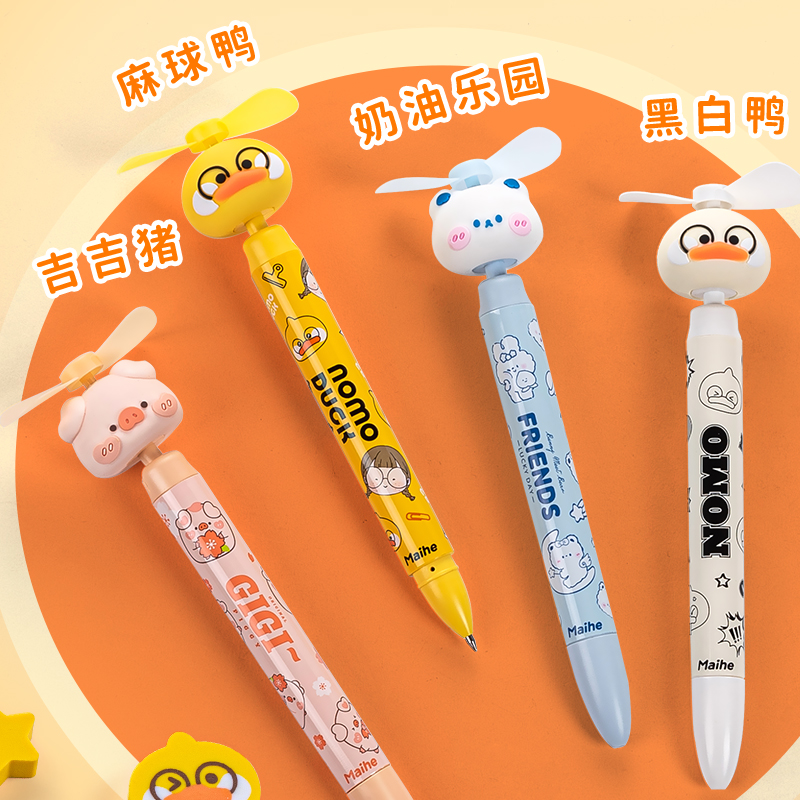 带风扇的笔奶龙学生迷你静音可爱中性笔儿童蛋仔派对飞机电风扇笔