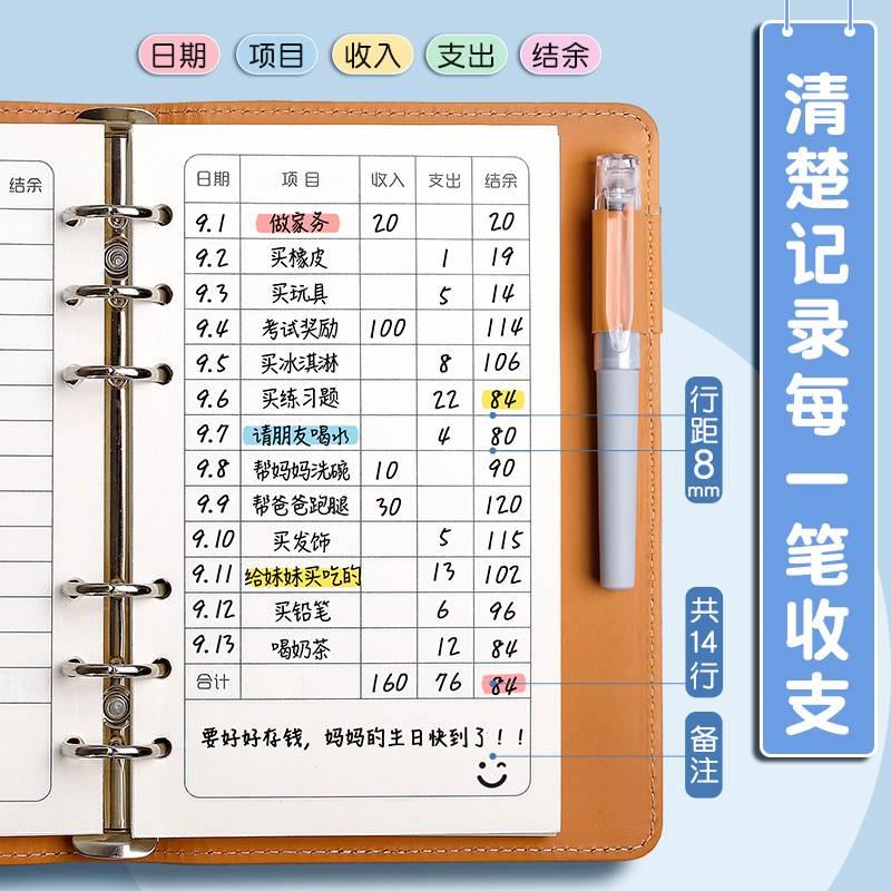 记账本手帐明细账可放钱零花钱收纳钱包现金日记家用家庭生活日常开支理财笔记本本子我的儿童账本钱袋存钱本