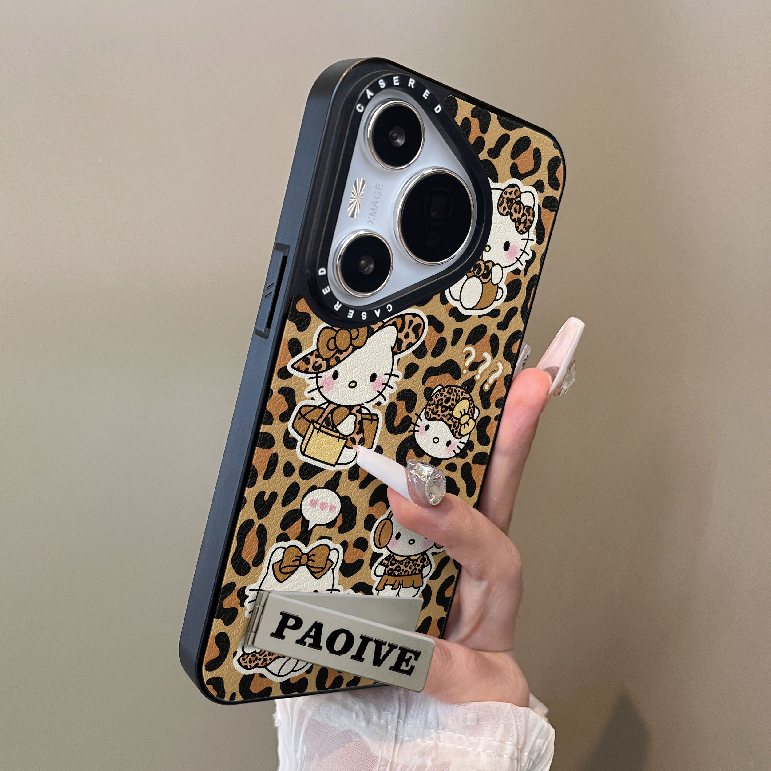 适用于华为pura80pro+手机壳豹纹熊和裙子猫p80plus十刀锋小羊皮支架p60简约p40新款p50e套防摔男女p70ultra