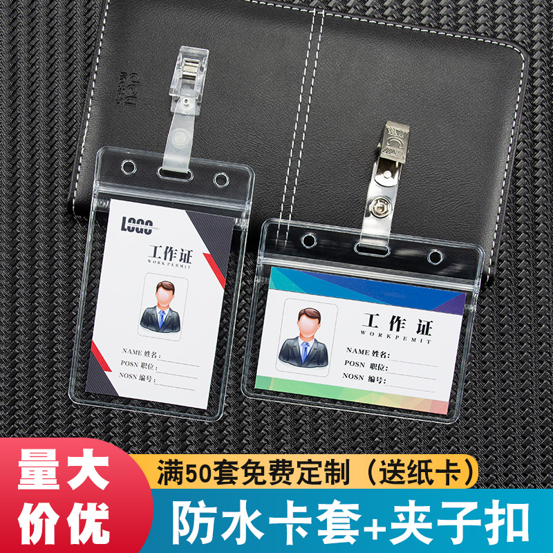 防水证件套胸卡夹子工作证卡套员工卡工牌胸牌套竖厂牌壳夹扣医院医生护士工作牌铁夹子塑料厂牌定制透明横版