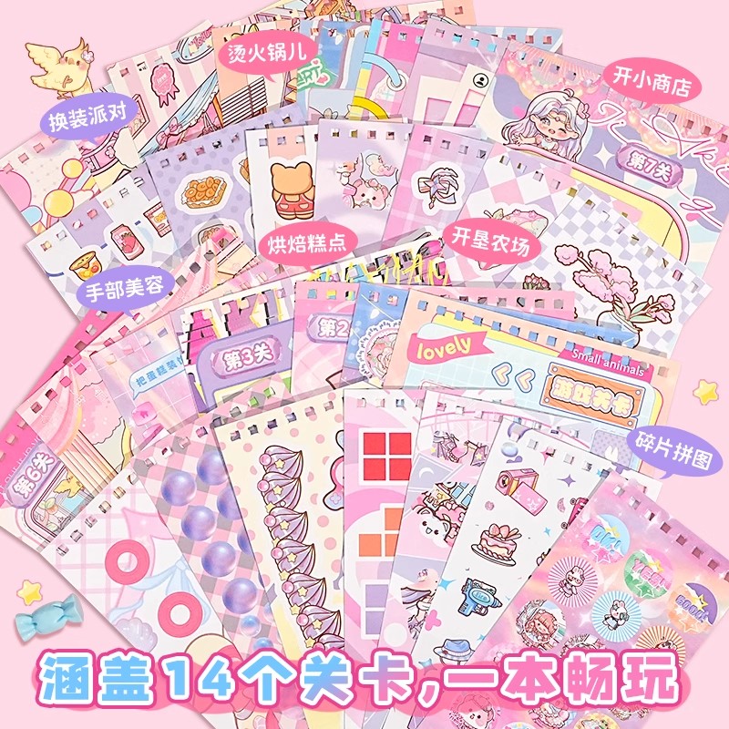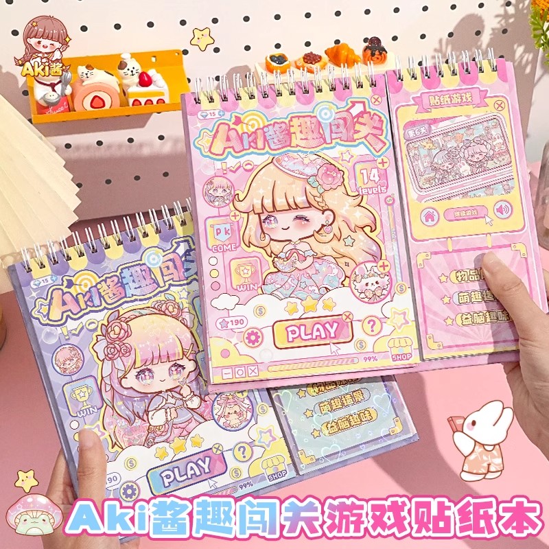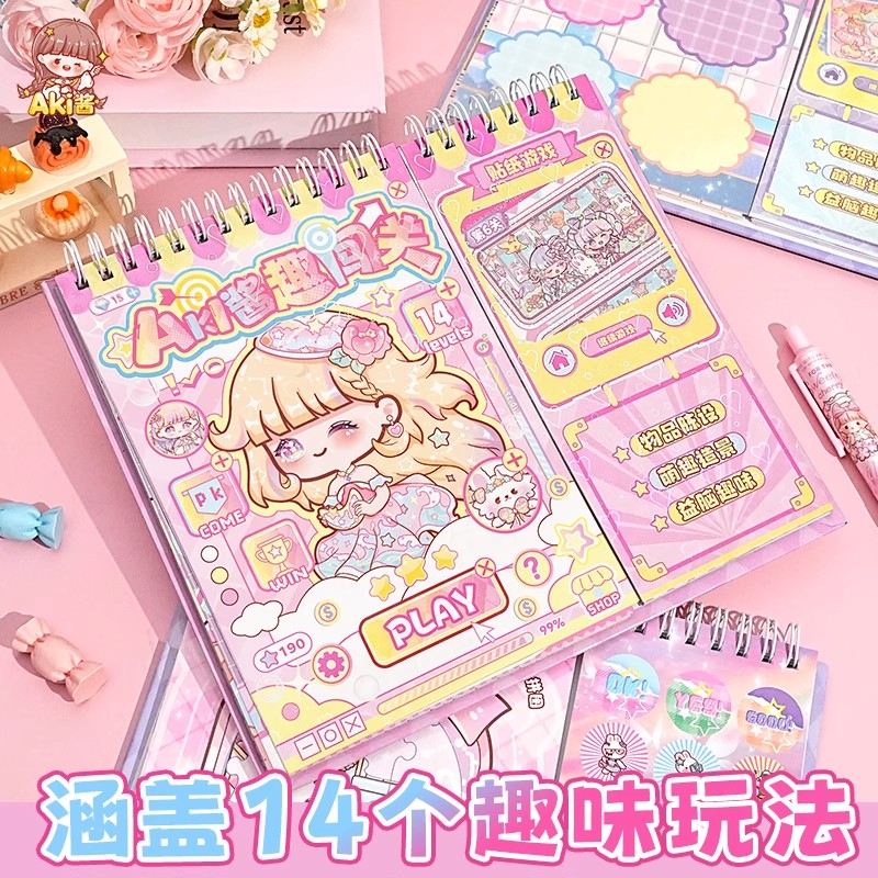 Aki酱闯关游戏贴纸本小学生免裁剪手账diy儿童解压玩具安静书造景