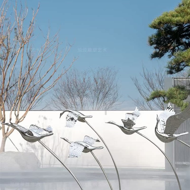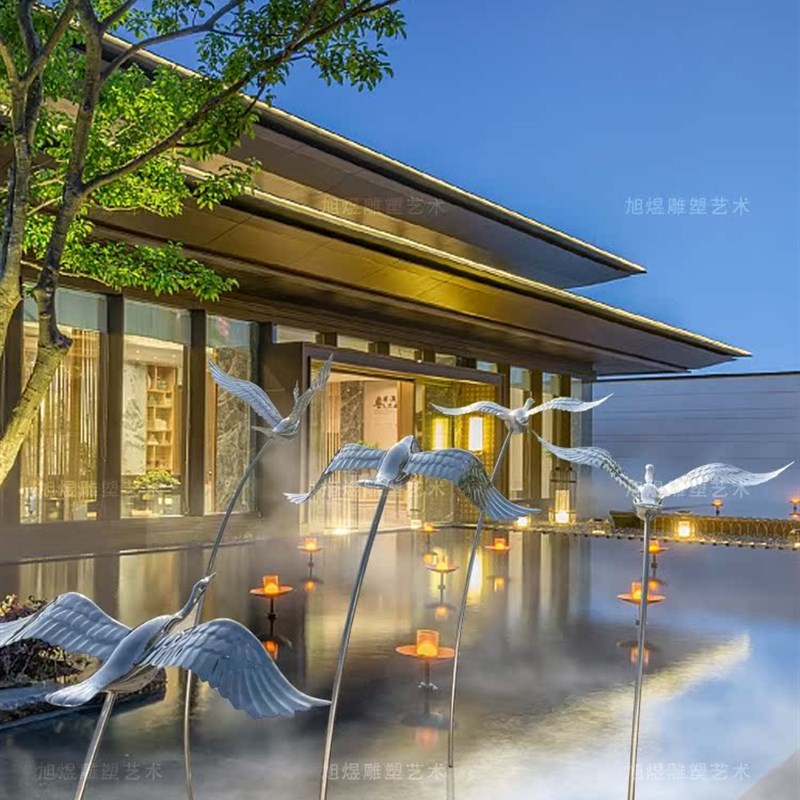 不锈钢仙鹤大雁雕塑白鹭户外w水创意物金属鸟园林草坪景观装饰摆