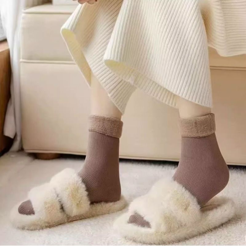 秋冬款雪地袜厚袜子女加厚保暖加绒中筒袜东北外穿居家条纹地板袜
