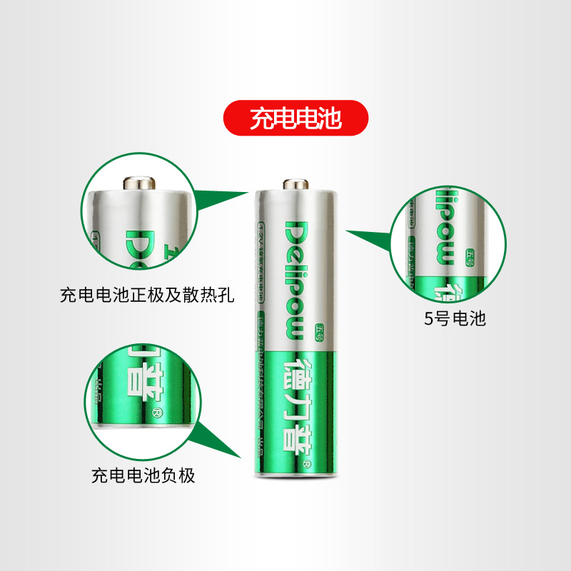 德力普5号充电电池6节装AA玩具鼠标镍氢可充电通用非1.5v五号电池