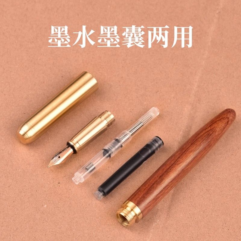 黄铜实木成人美工弯尖钢笔书写练字书法笔弯头教师节礼物商务刻字礼品签字笔非碳素墨水装墨囊可替换笔尖