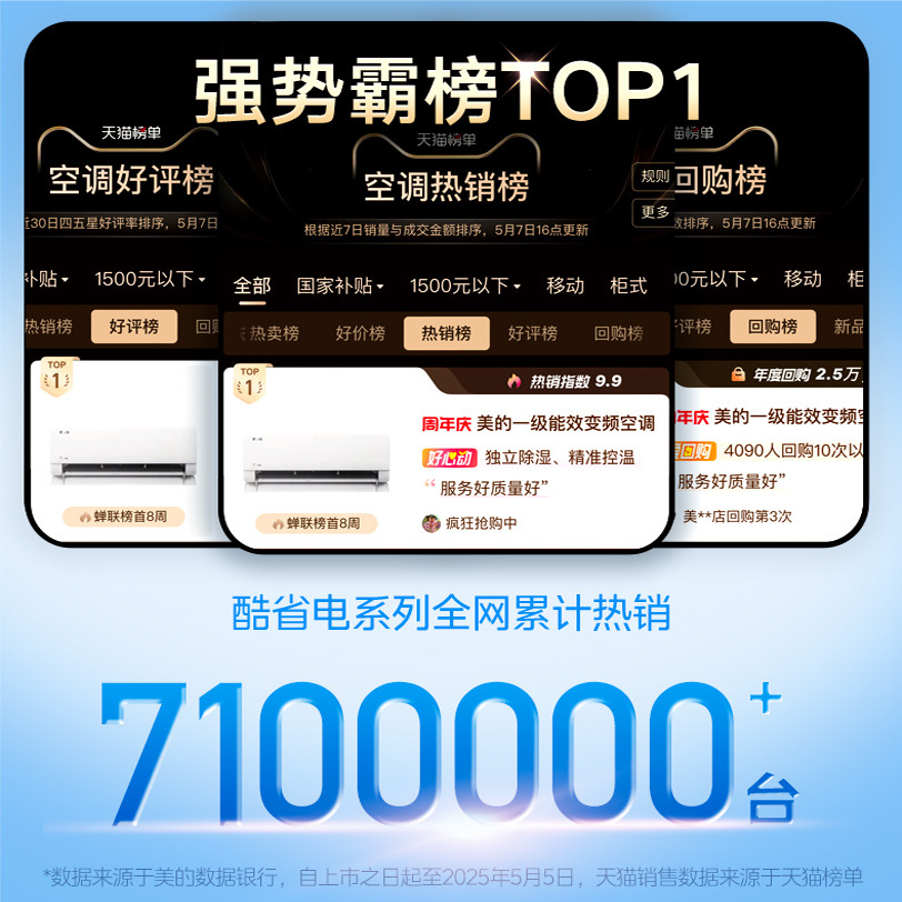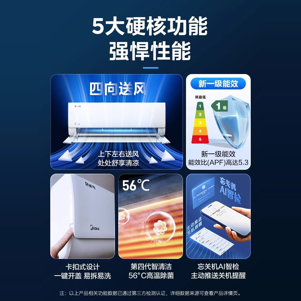【菜鸟次日达】美的空调酷省电1匹1.5匹壁挂式变频家用大风口一级