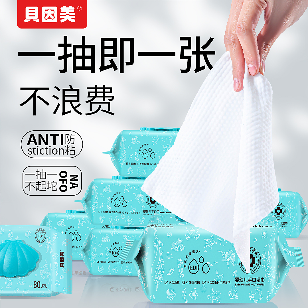 贝因美湿巾温和不刺激纯水无添加男女通用家庭实惠装80抽大包手口