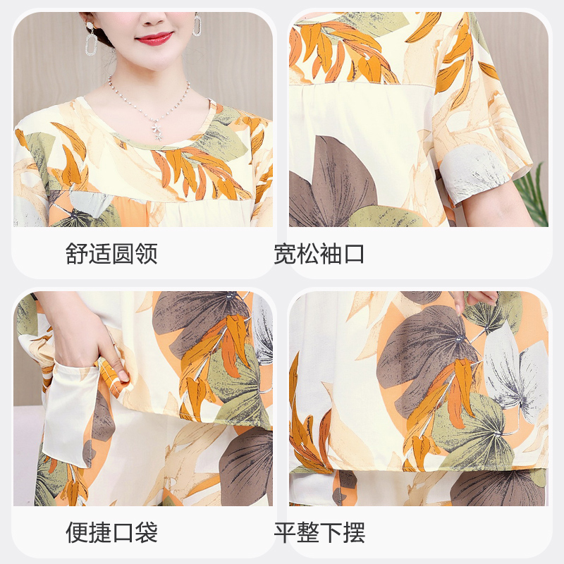 棉绸宽松夏季大码短袖上衣休闲显瘦小衫人造棉减龄中老年妈妈T恤