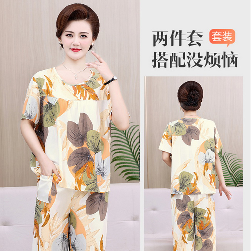 中年女装夏装新款运动套装40岁50妈妈夏季休闲两件套圆领T恤夏天