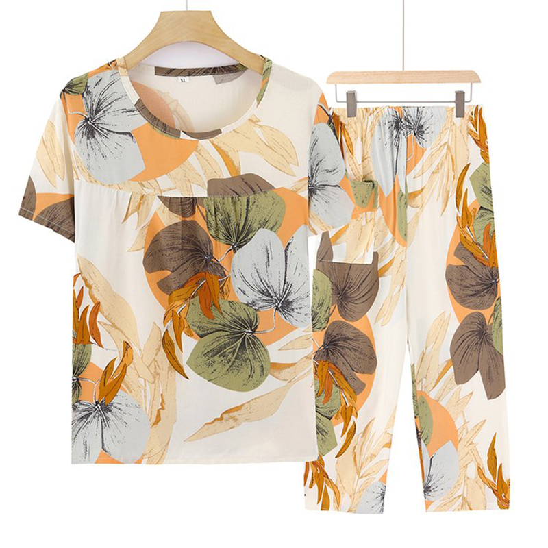 妈妈棉绸睡衣女款2025新款春夏季短袖中老年女士人造棉家居服套装