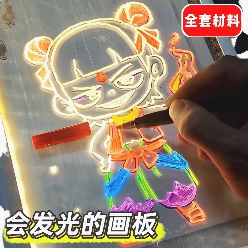 透明会发光的画板儿童宝宝涂鸦画画电子手写可擦LED荧光板亚克力