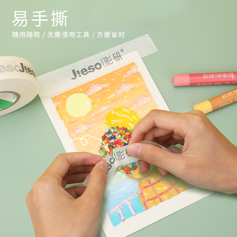 彩研美纹纸胶带油画棒专用美术生专用水彩绘画用美文纸胶布低粘喷漆装修批发手撕无痕耐高温油漆瓷砖美文贴纸
