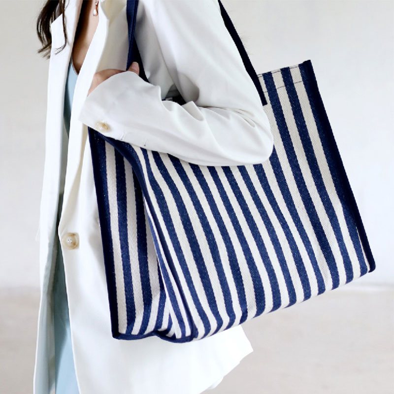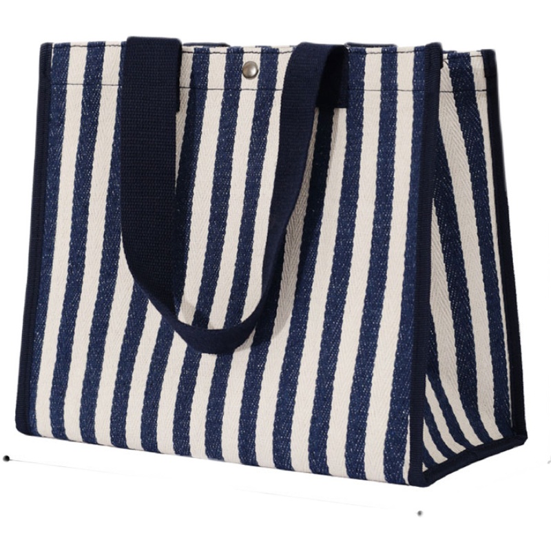 帆布包女上班族手提包大容量条纹单肩收纳手提袋子外出时尚购物袋