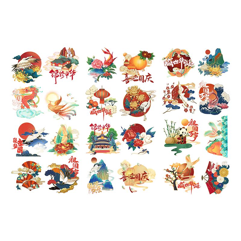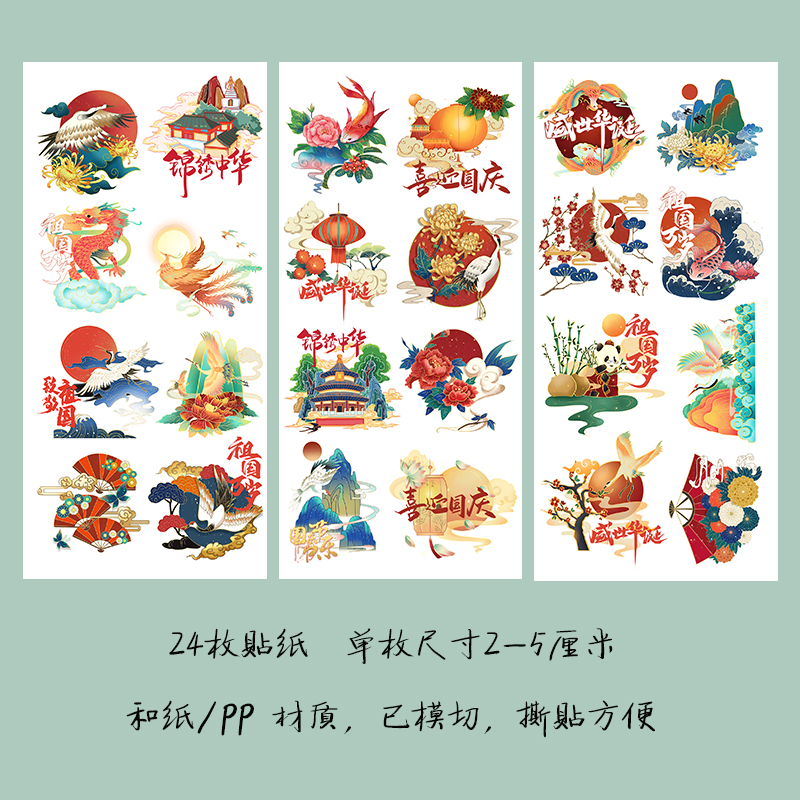 国庆节快乐手账贴纸热爱歌唱祖国贴我爱中国素材爱国主义主题贴纸