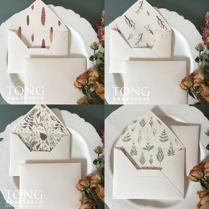 现货草木风森系小清新花草大地纸复古米色信封内衬彩色素面信封