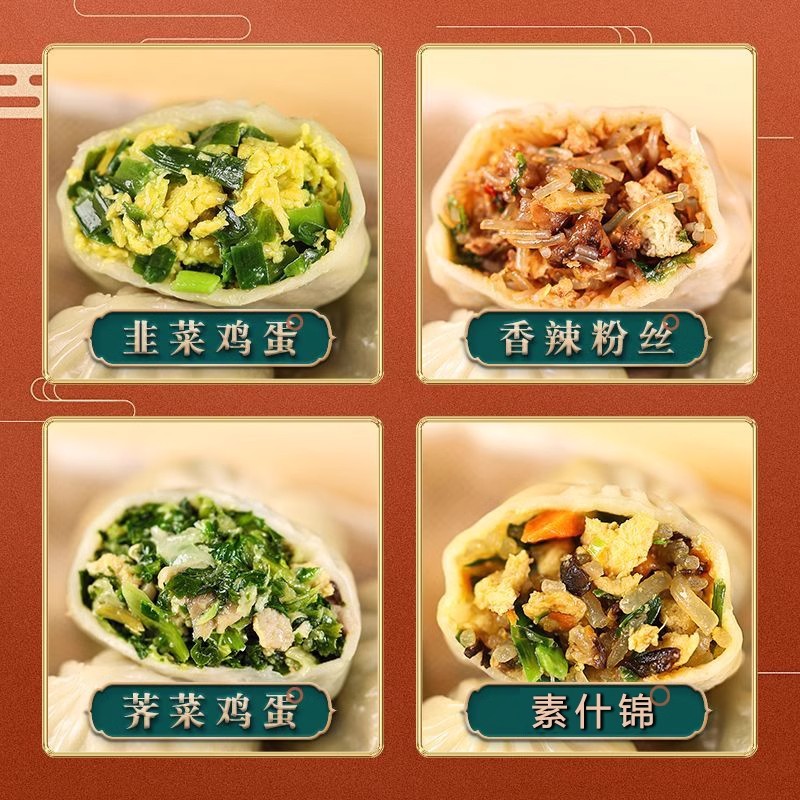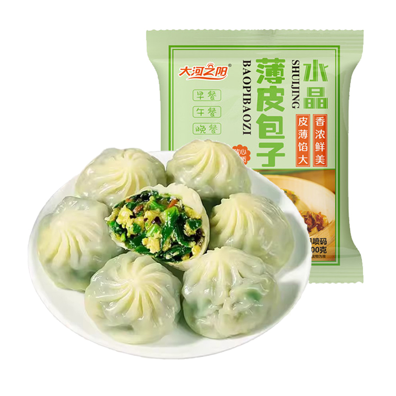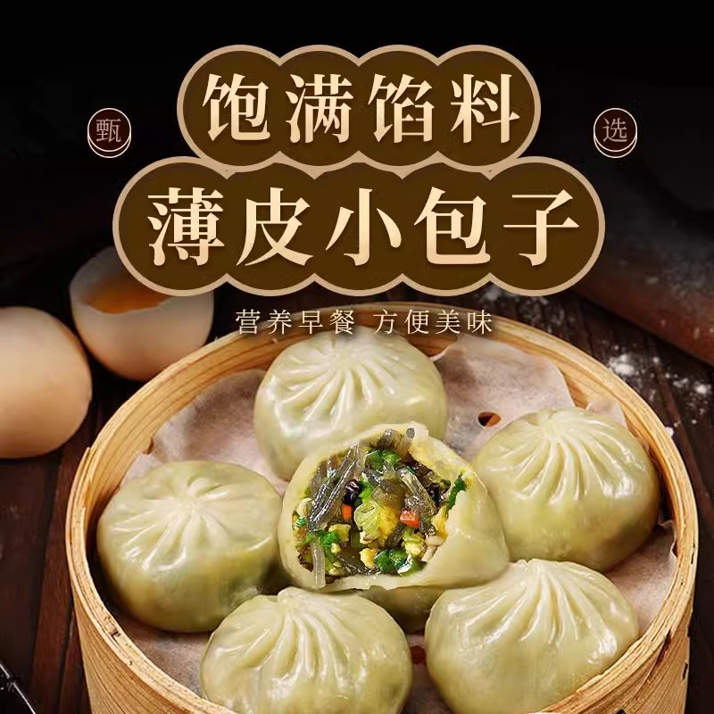 包子早餐半成品小笼包水晶薄皮素加热即食韭菜粉丝冻速食香辣鸡蛋