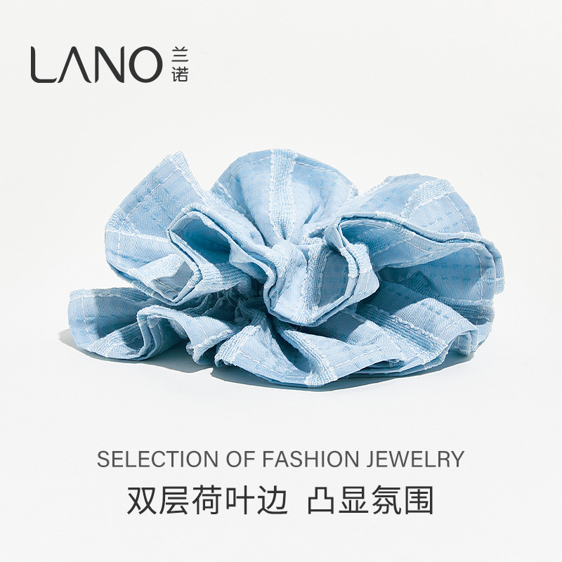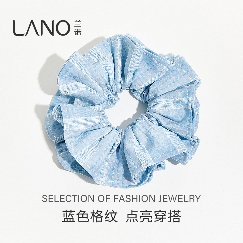 兰诺欧花苞大肠发圈女2025新款高级感扎低马尾丸子头发饰蓝色双层