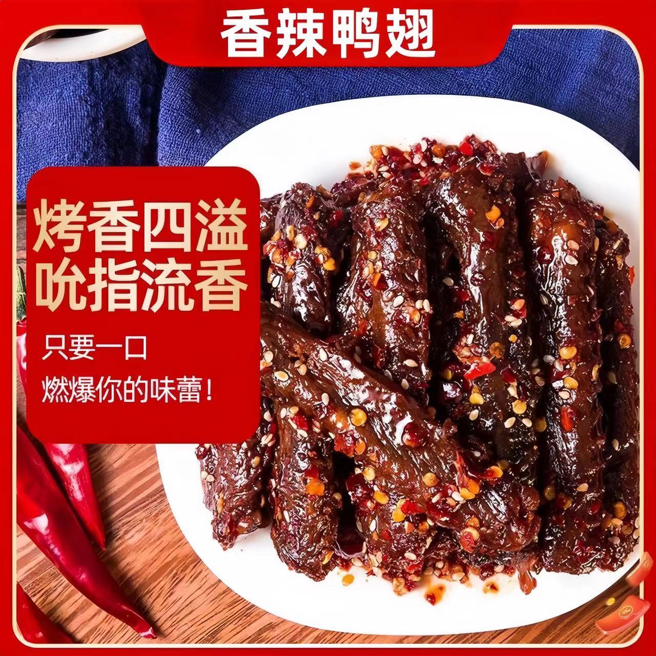 馋小乖香辣鸭翅中鸭翅零食鸭货熟食特产解馋麻辣休闲小吃