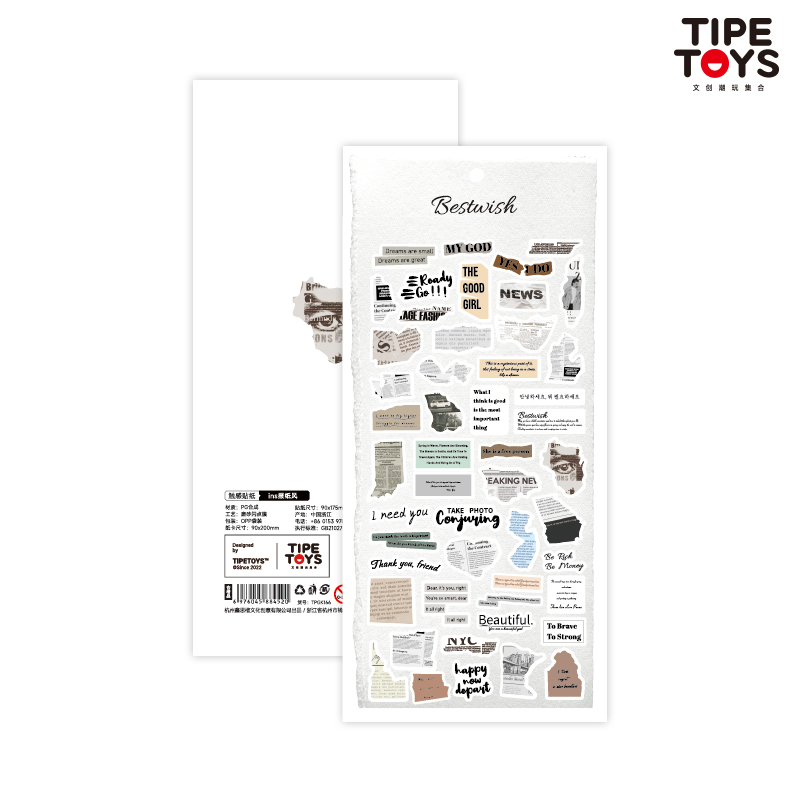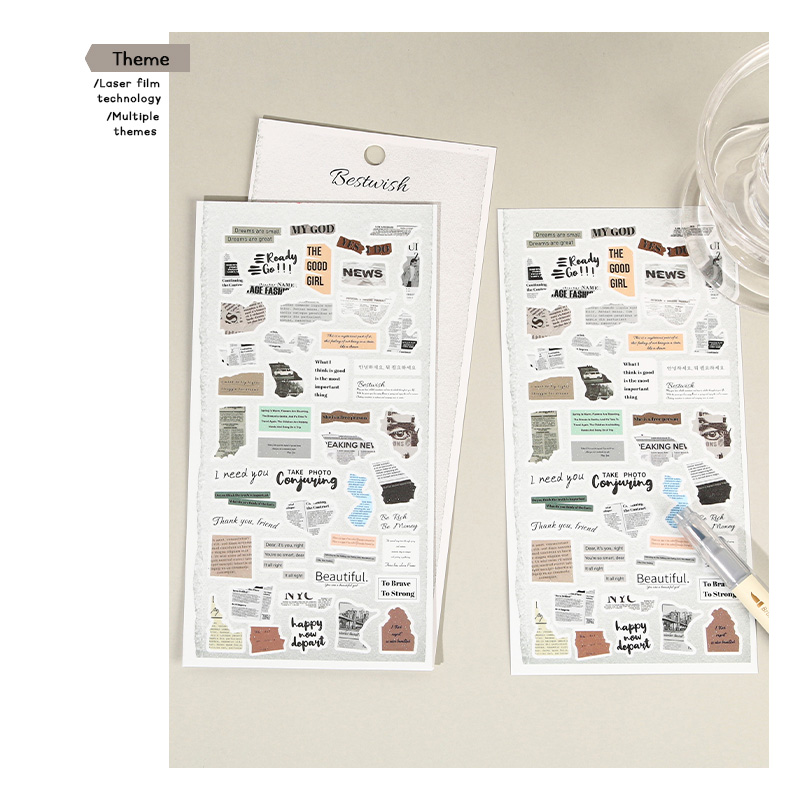 ins报纸风贴纸英文不规则碎片图案原创咕卡笔记本行李箱手机壳水杯手账本头盔自行车diy装饰防水贴画