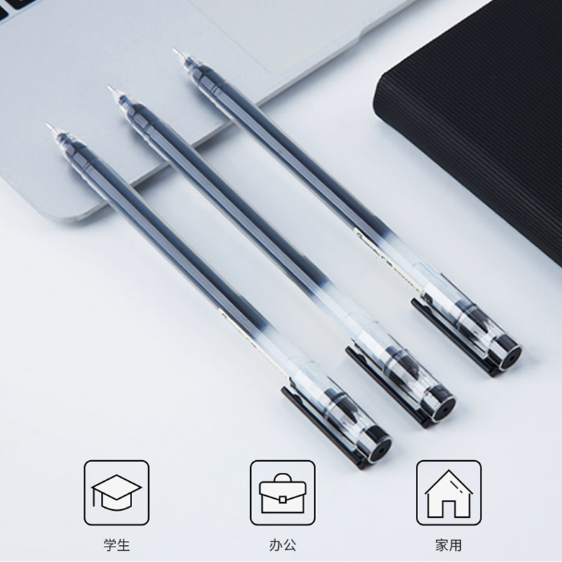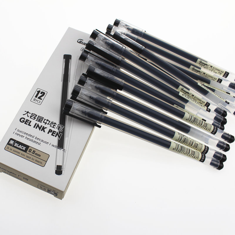 广博极简中性笔黑色全针管大容量学生用水笔透明杆简约签字笔12支