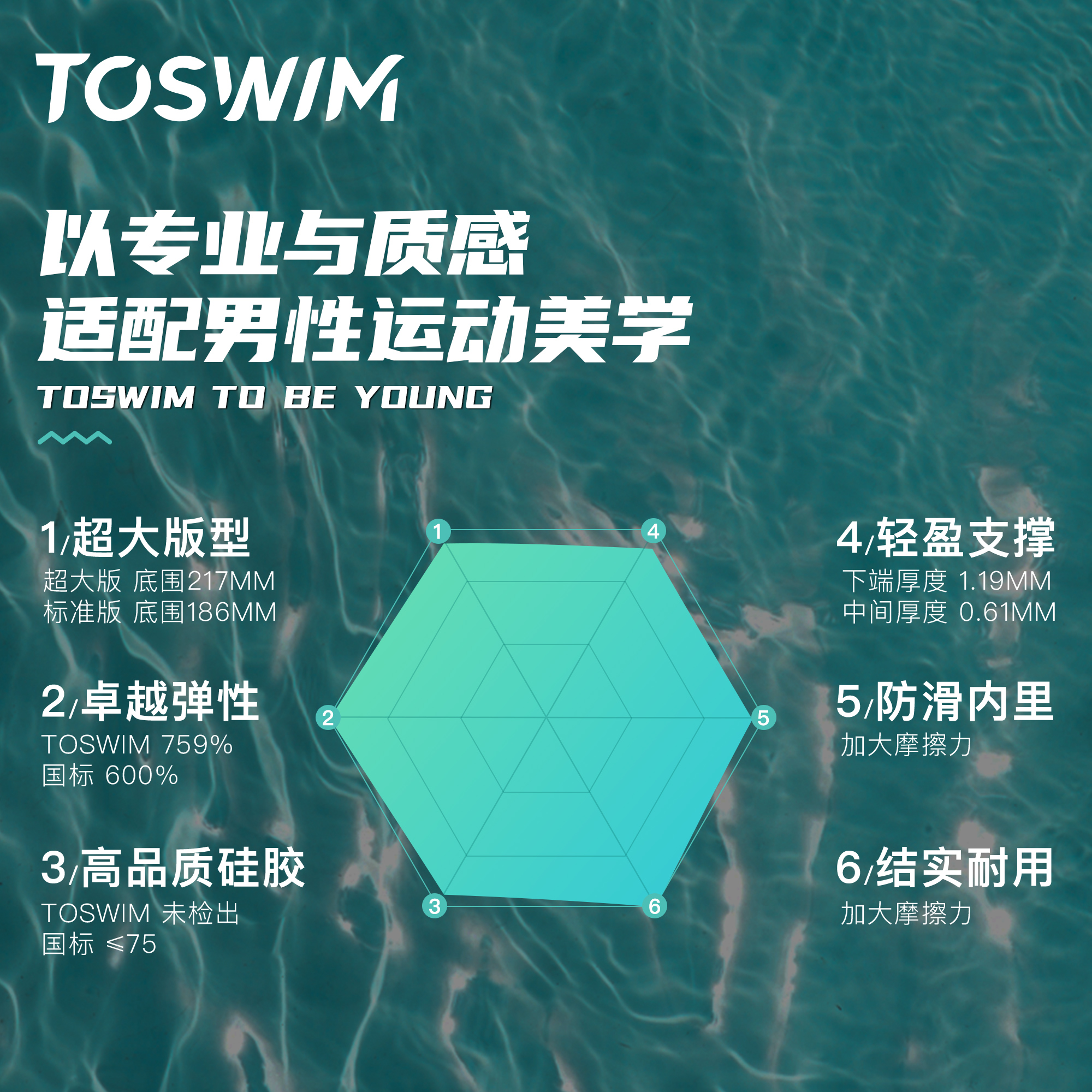 TOSWIM泳帽男女款专业防水护耳防氯防晒成人硅胶加大不勒头游泳男