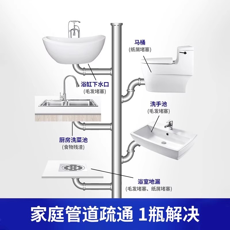 管道下水道强力疏通剂溶解通厨房地漏疏通油污神器厕所马桶堵塞液