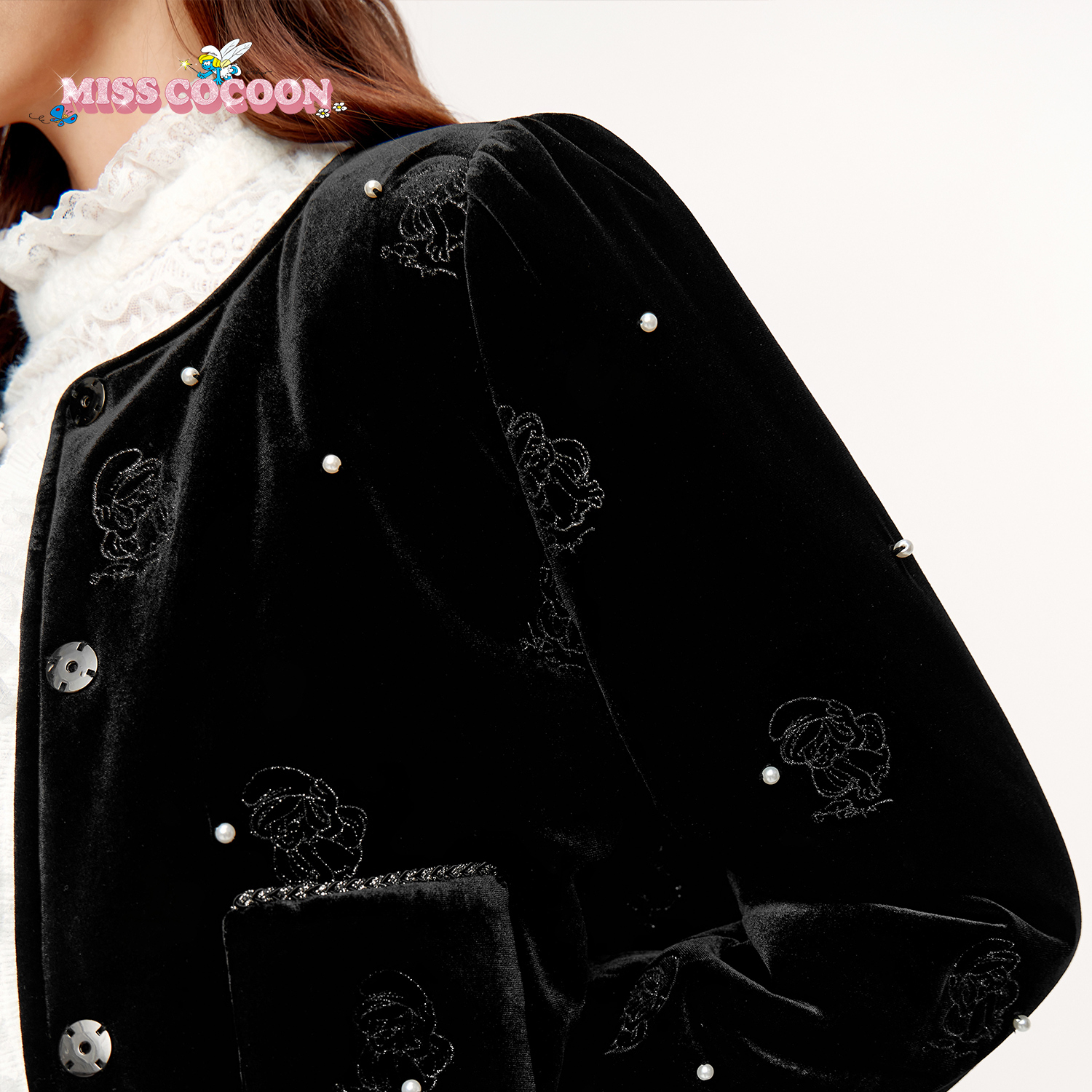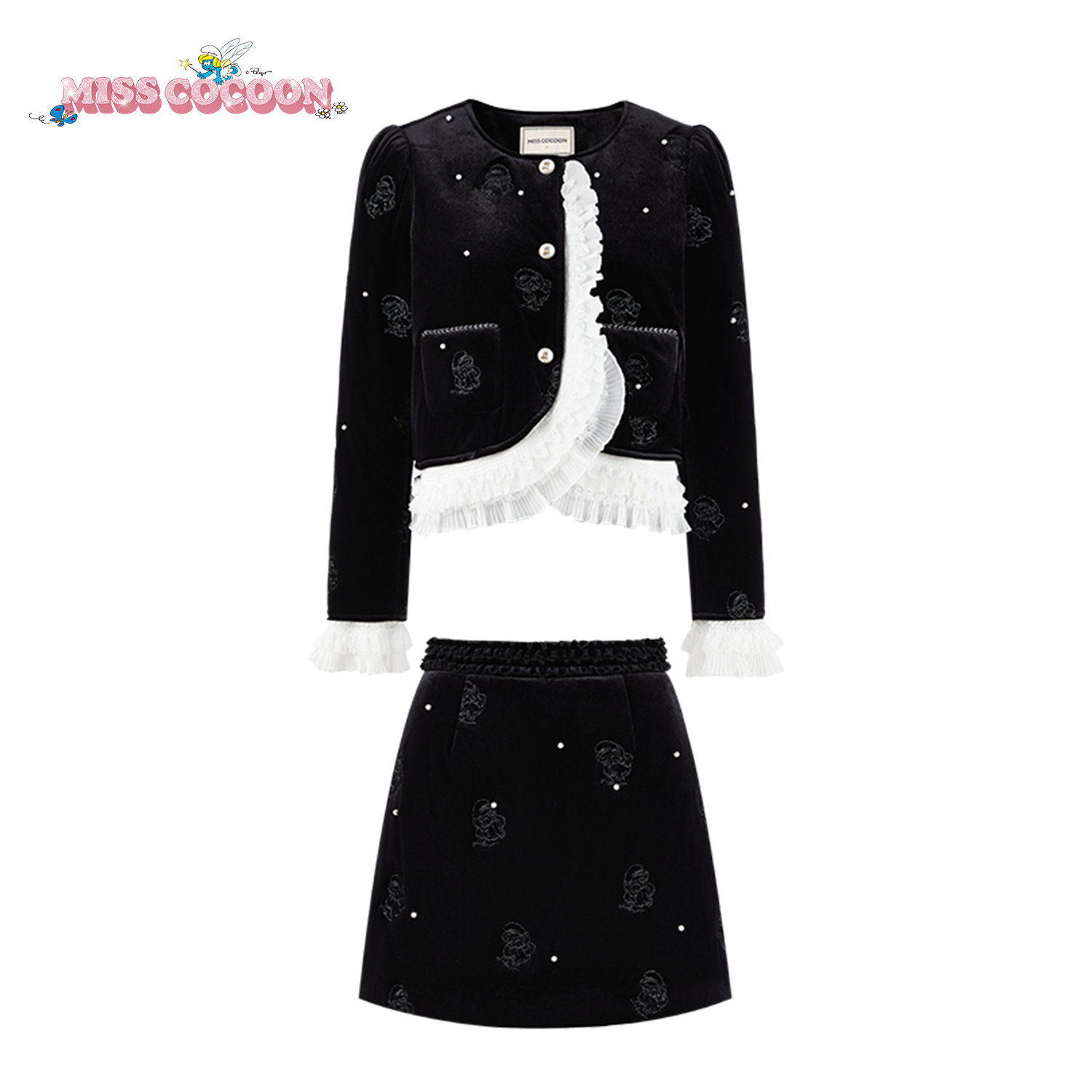 MISSCOCOON可可尼蓝精灵联名套装女2025冬季新款千金风丝绒外套