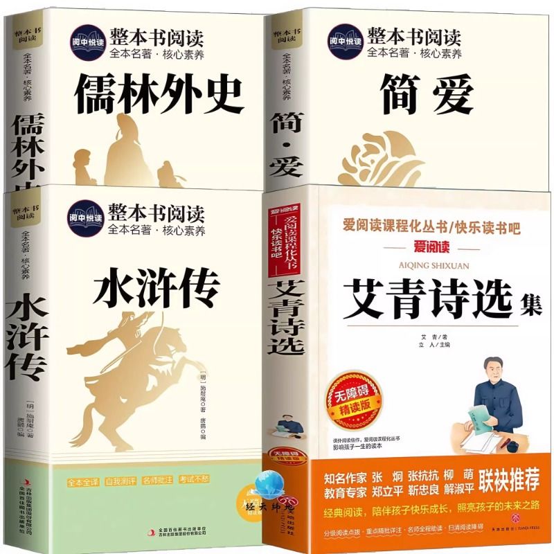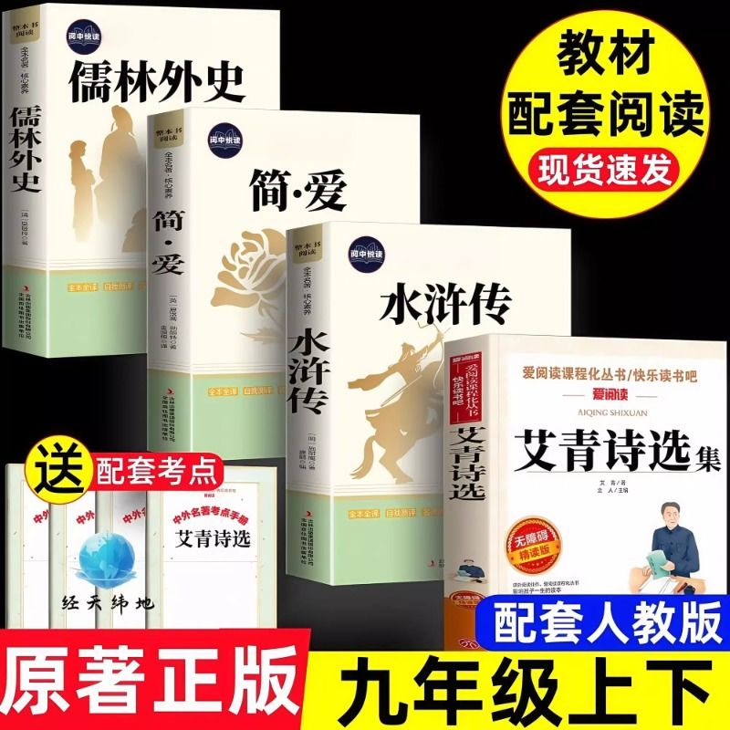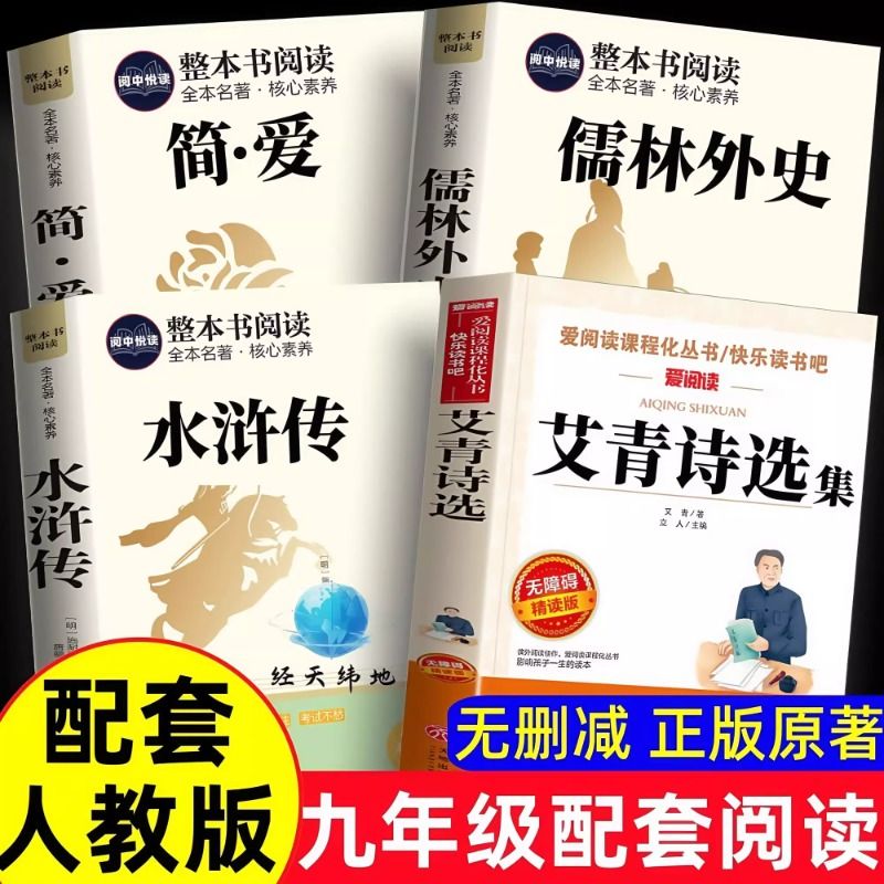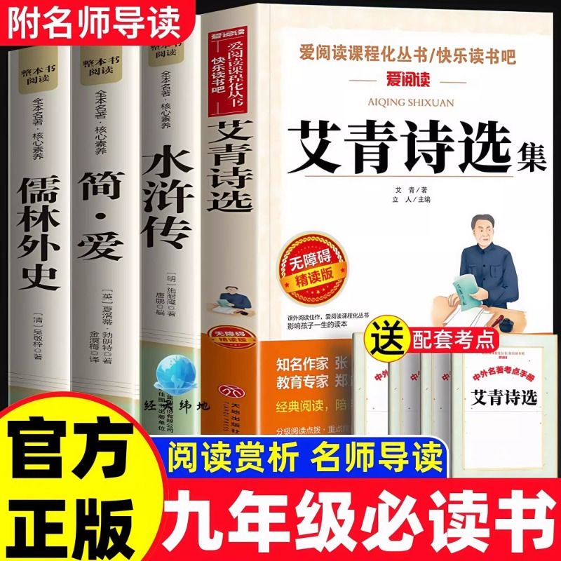艾青诗选和水浒传原著完整版九年级上册课外书必读正版书9上名著初三课外阅读书籍书目诗集青少年版简爱课本考点无删减配套上下册