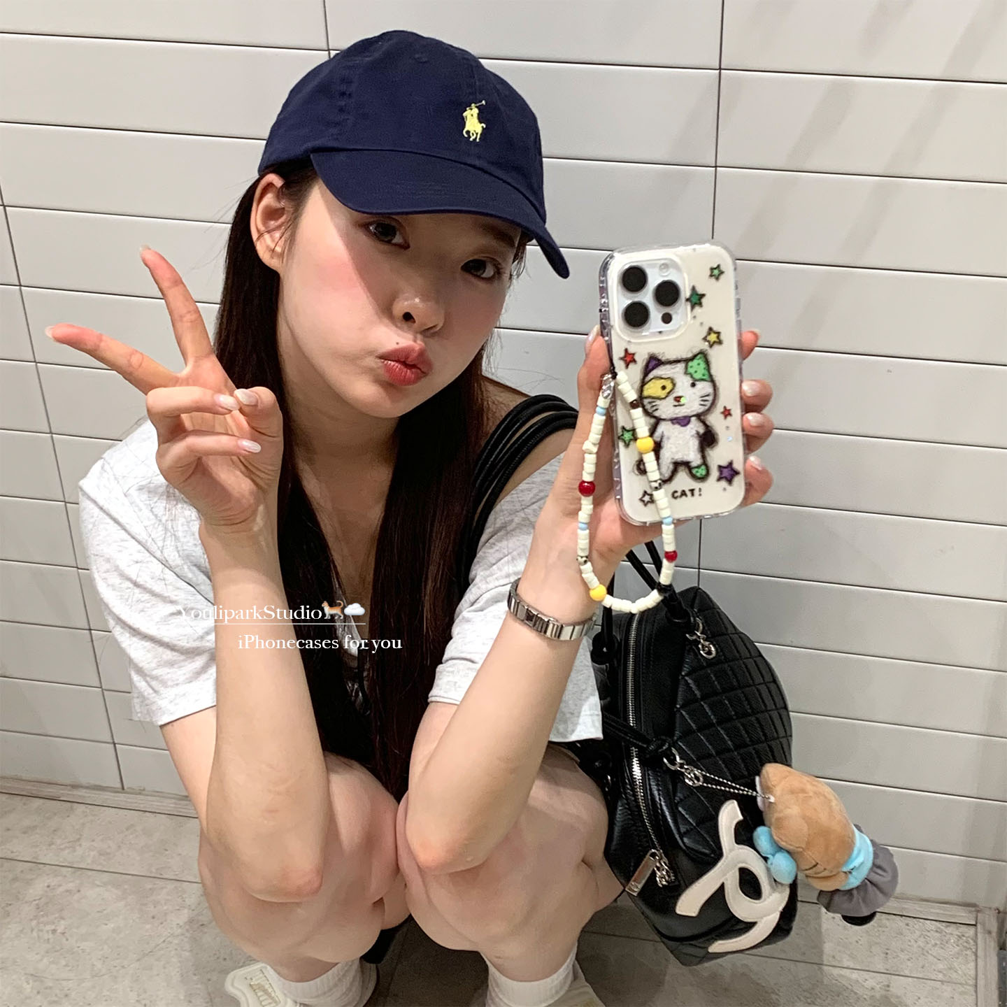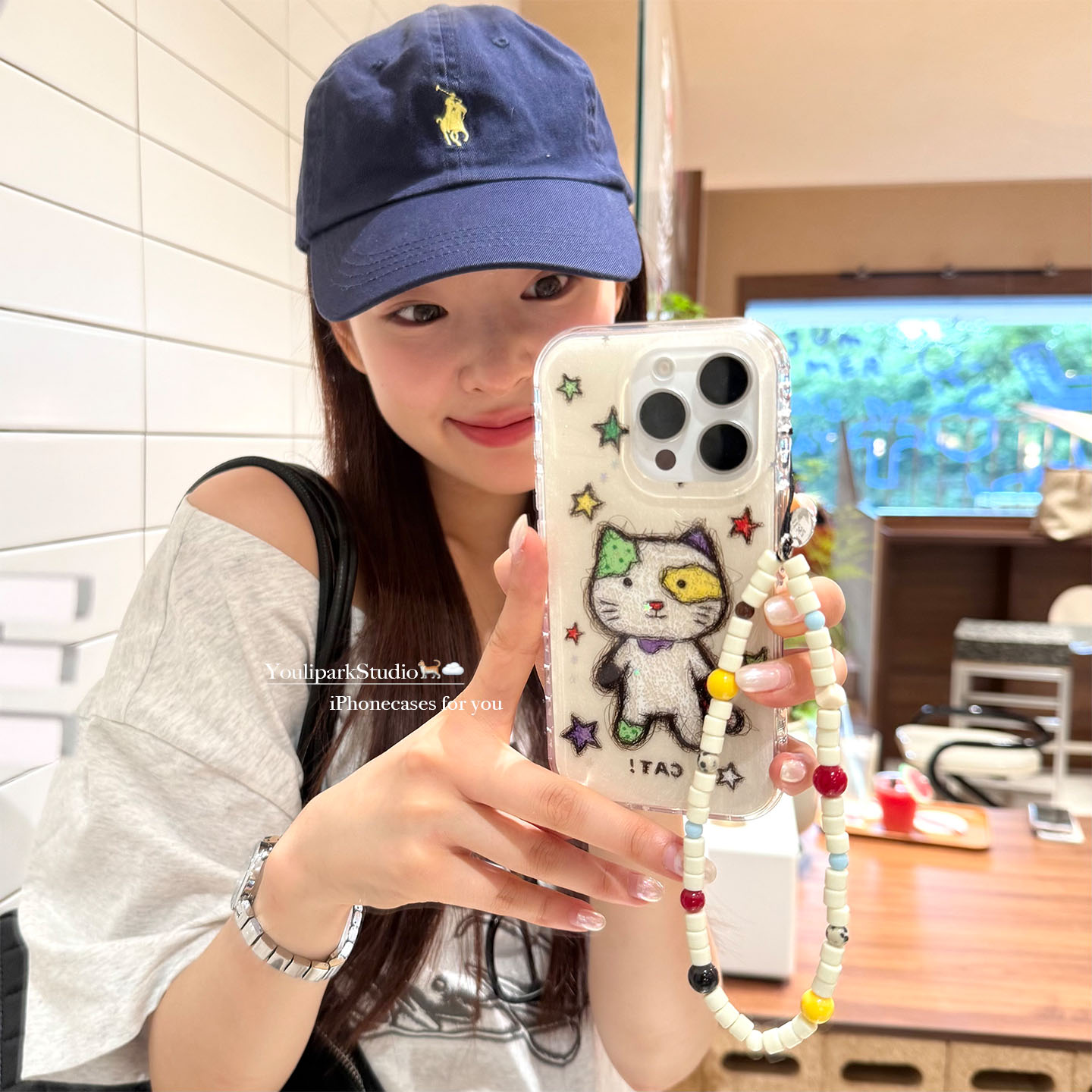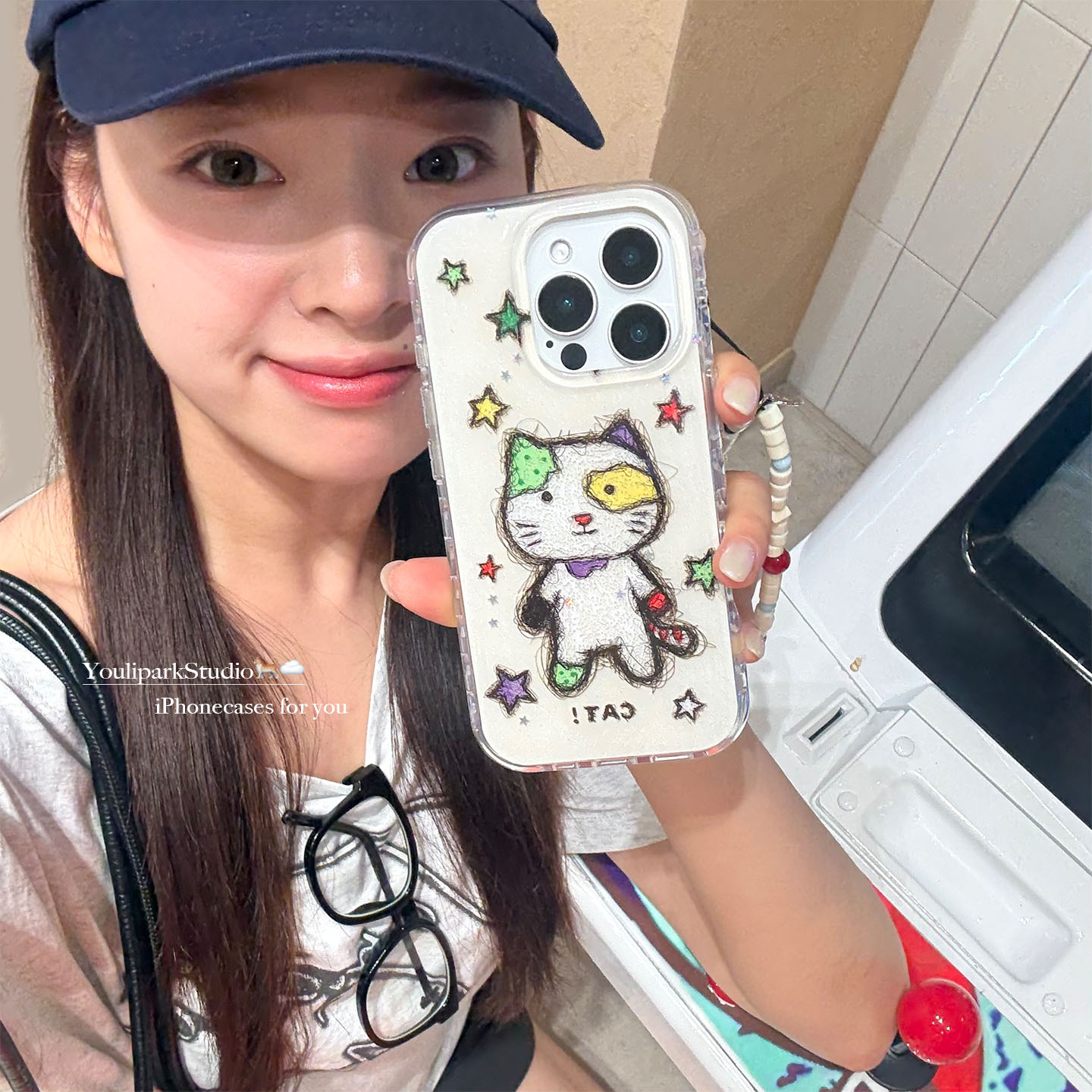 由里公园ins可爱涂鸦线条星星猫咪小怪15适用17pro苹果17ProMax手机壳iPhone16全包17新款14Promax保护套13女