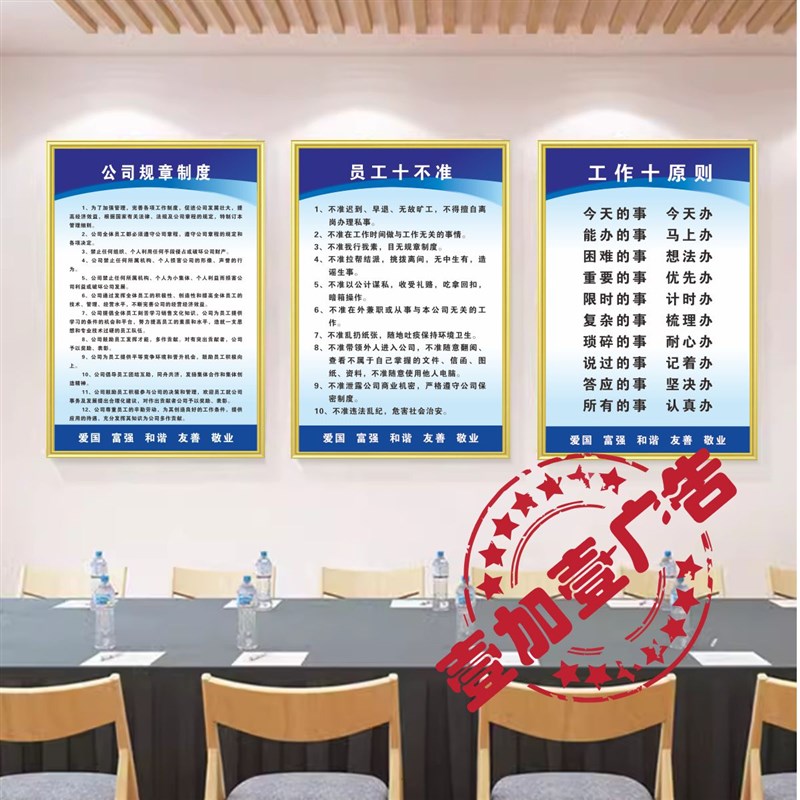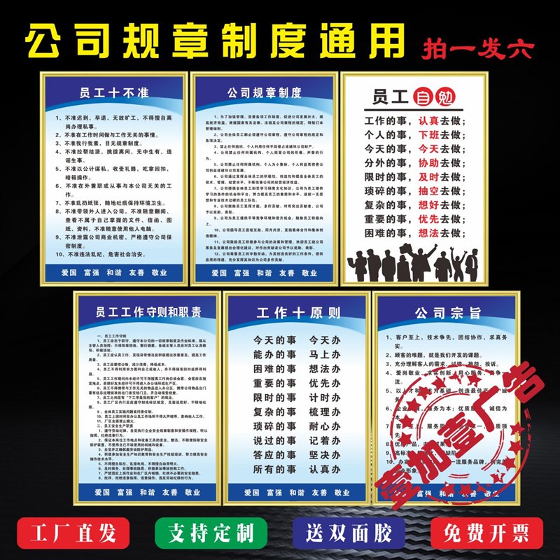 热销公司管理规章制度牌企业办公室员工守则文化标语工作原则十不
